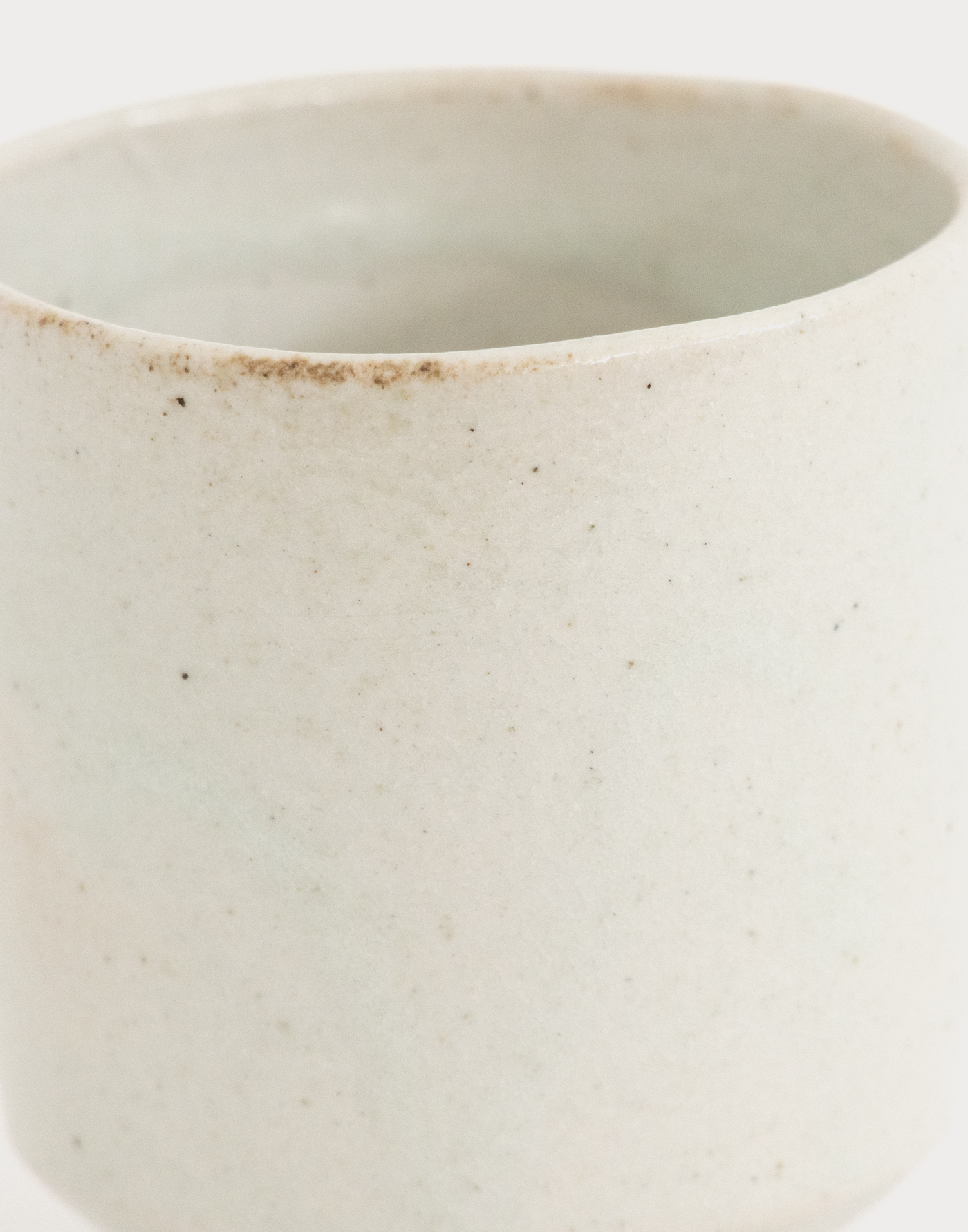 | A beautiful white porcelain cup. For tea ceremony bowls, sake cups, etc. Shigeo Tanaka lives in a 280-year-old house in Asuka village, Nara Prefecture, and works in a seasonal mountain valley using an anagama kiln; the Likei and an inverted-flame kiln. In the valley near the Likei Kiln, there are two deep pools, the male pool and the female pool. It is believed that the dragon gods (Otoko-kami, Onna-kami) live there and that it leads to the Ryugu (Dragon Palace). His pursuit of spiritual evolution is manifested in his work as a unique shimmering, white jade-like color, irreplaceable and beautiful. Ceramic SIZE: H 65mm x W 60mm *It may be slightly different from the actual color. |