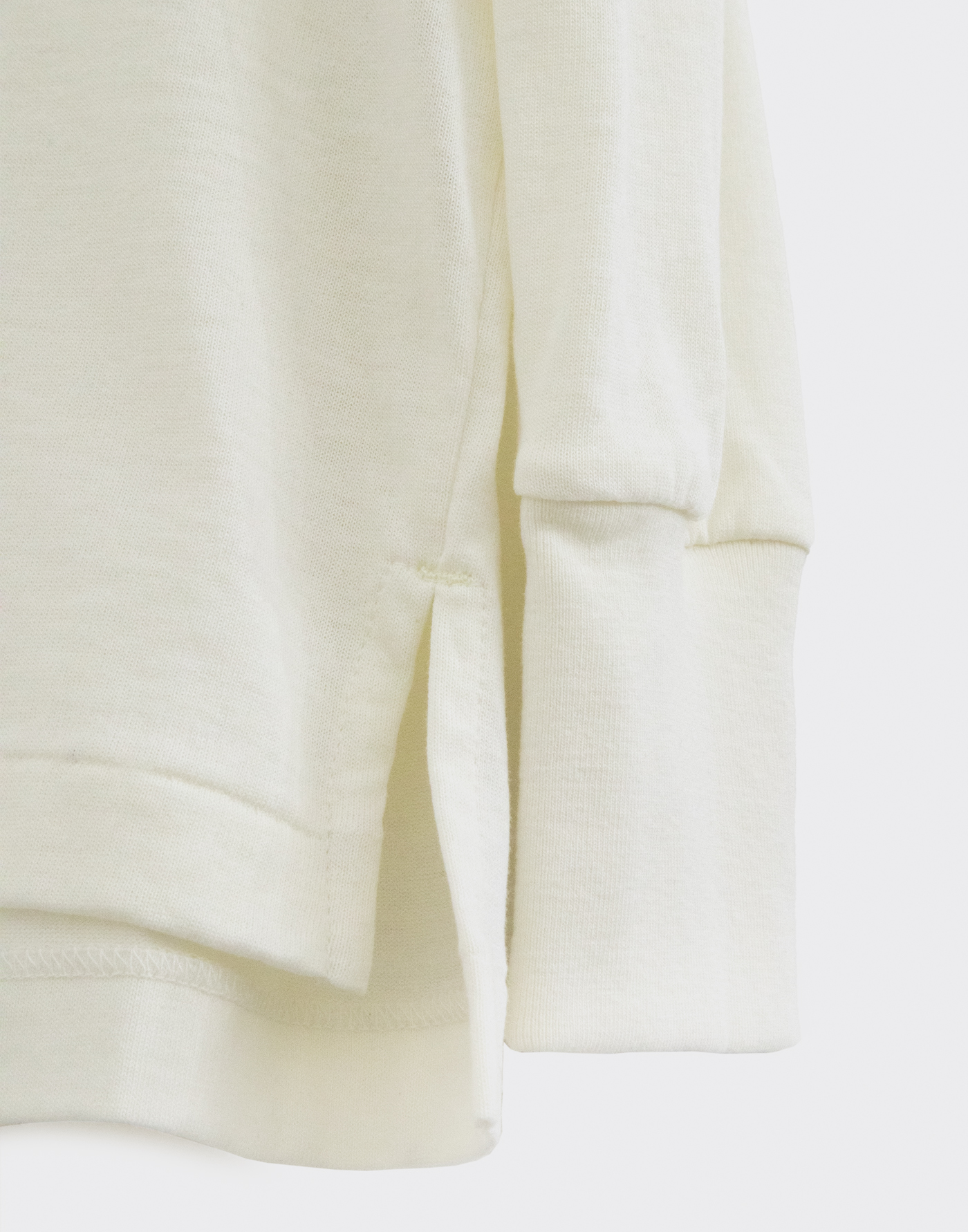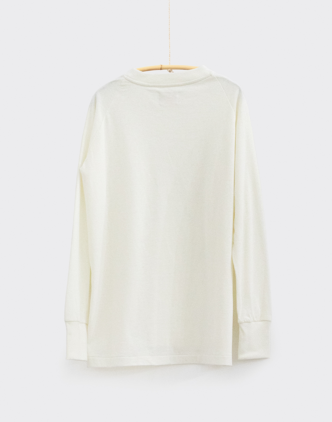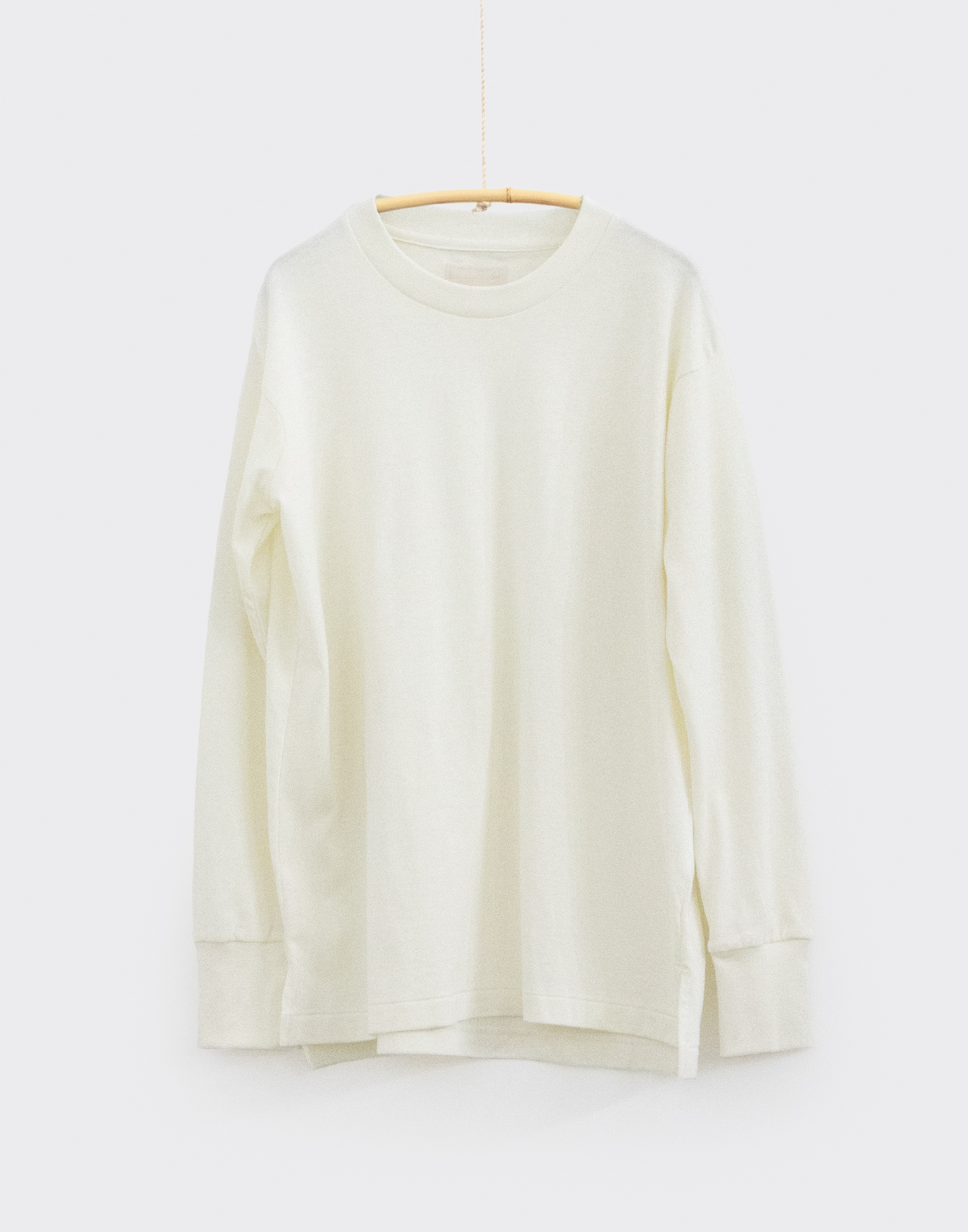 Made from interwoven cotton and cashmere. Long sleeve t-shirt. Cotton 90%, Cashmere 10% Size: S Length 64.5 / Width 49.5 / Cuff from front neck point (through Shoulder point) 58.5 Size: M Length 72 / Width 54.5 / Cuff from front neck point (through Shoulder point) 68 Size: L Length 77 / Width 58 / Cuff from front neck point (through Shoulder point) 71.5 *cm Click here for inquiries regarding size. |