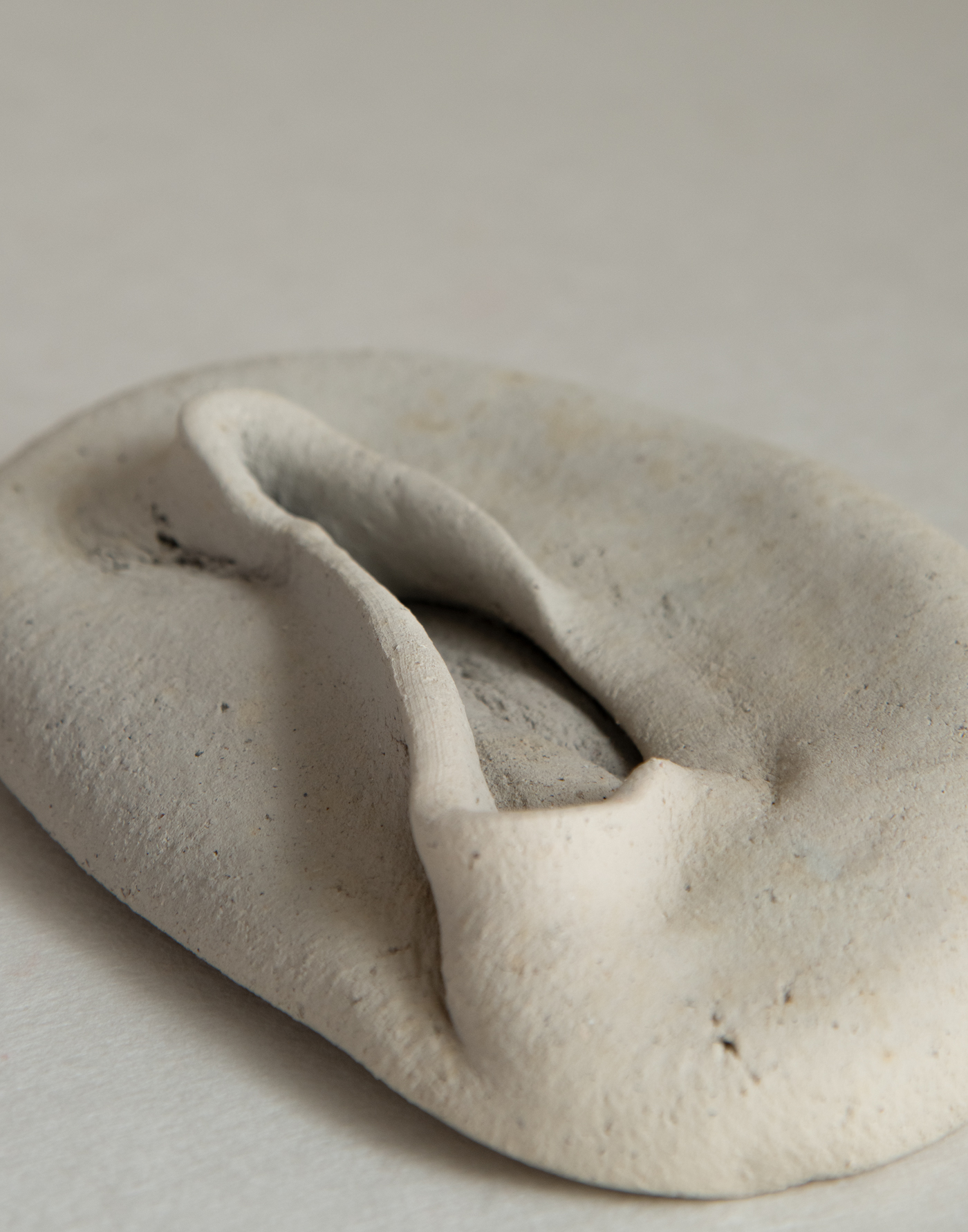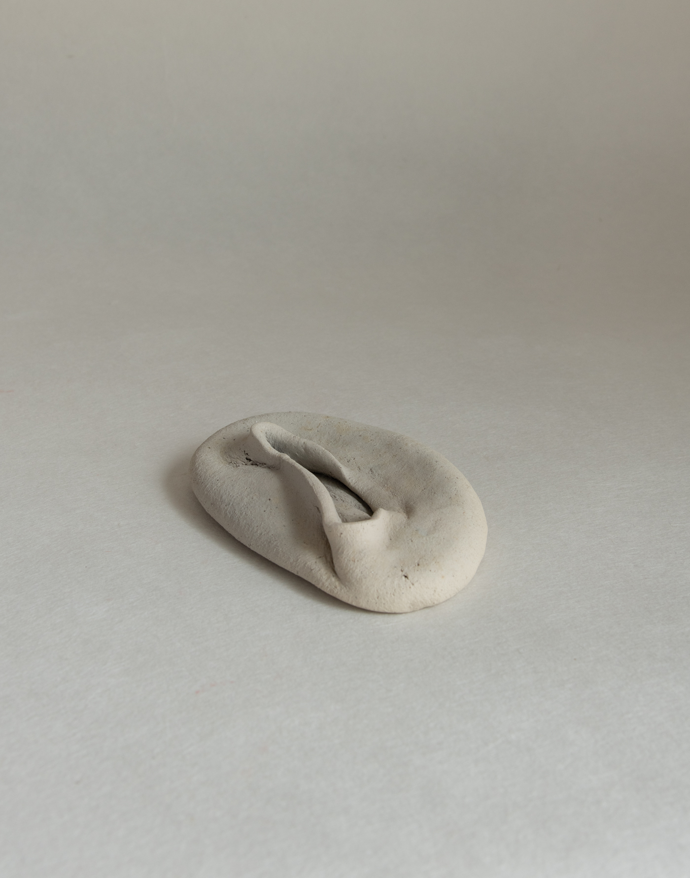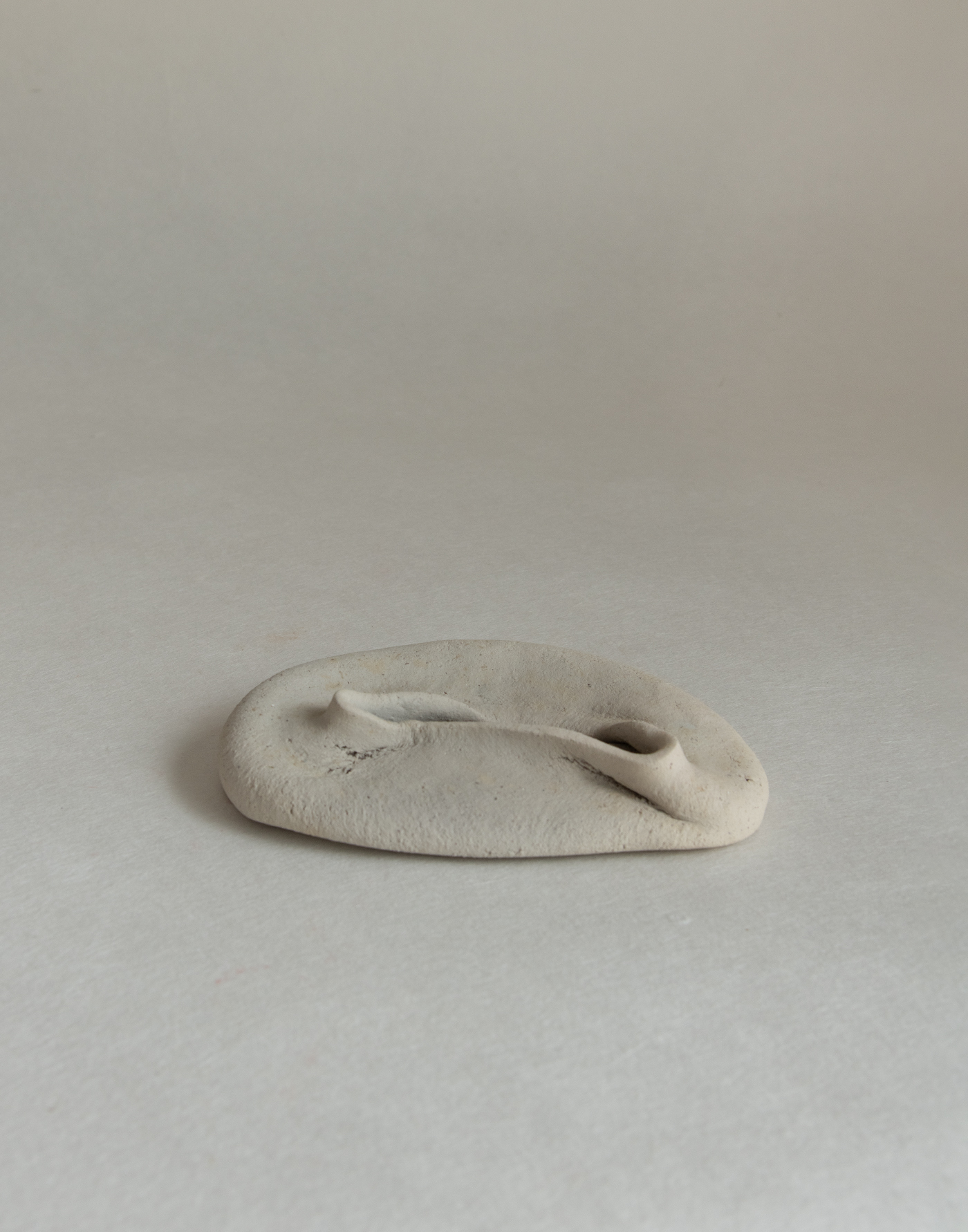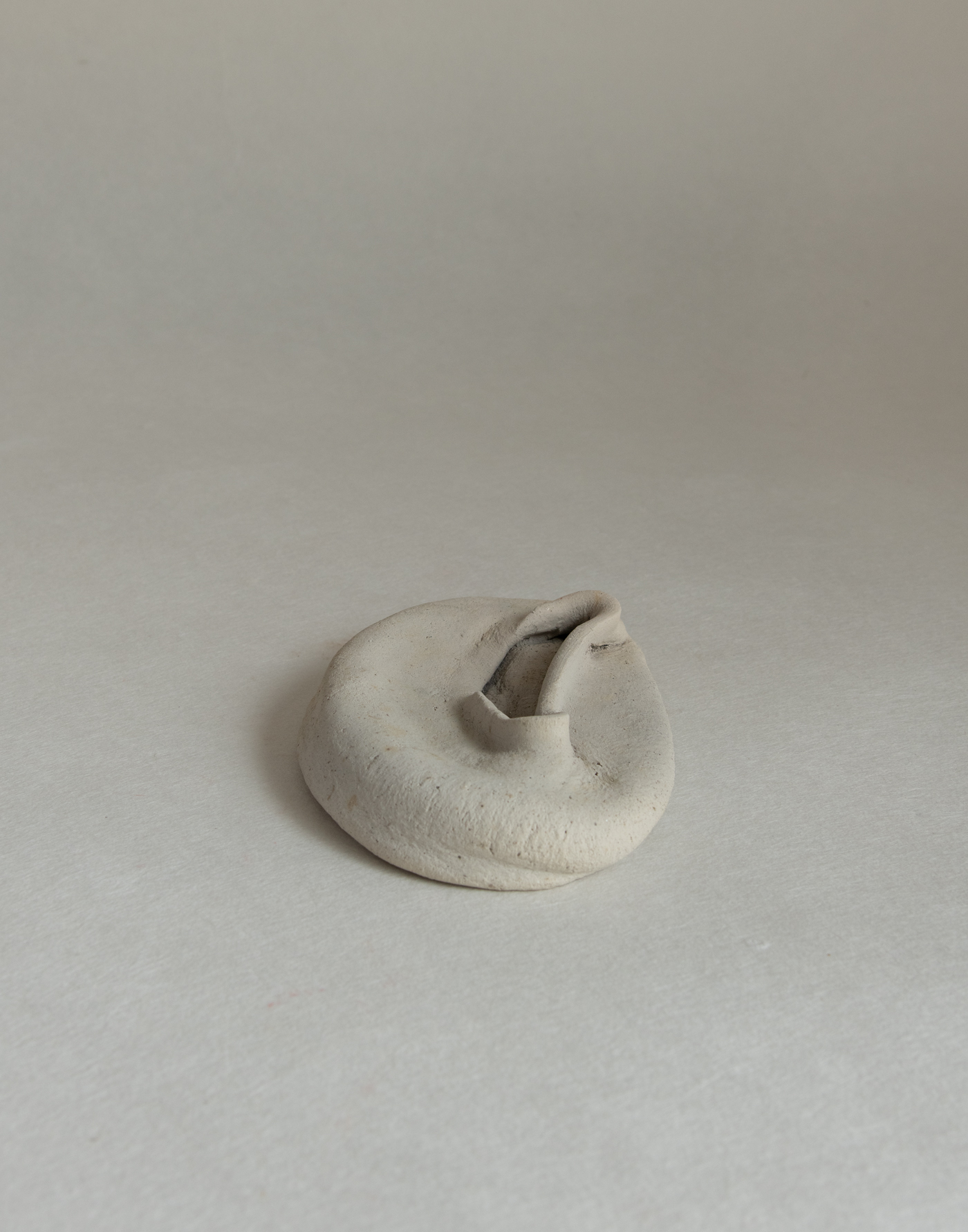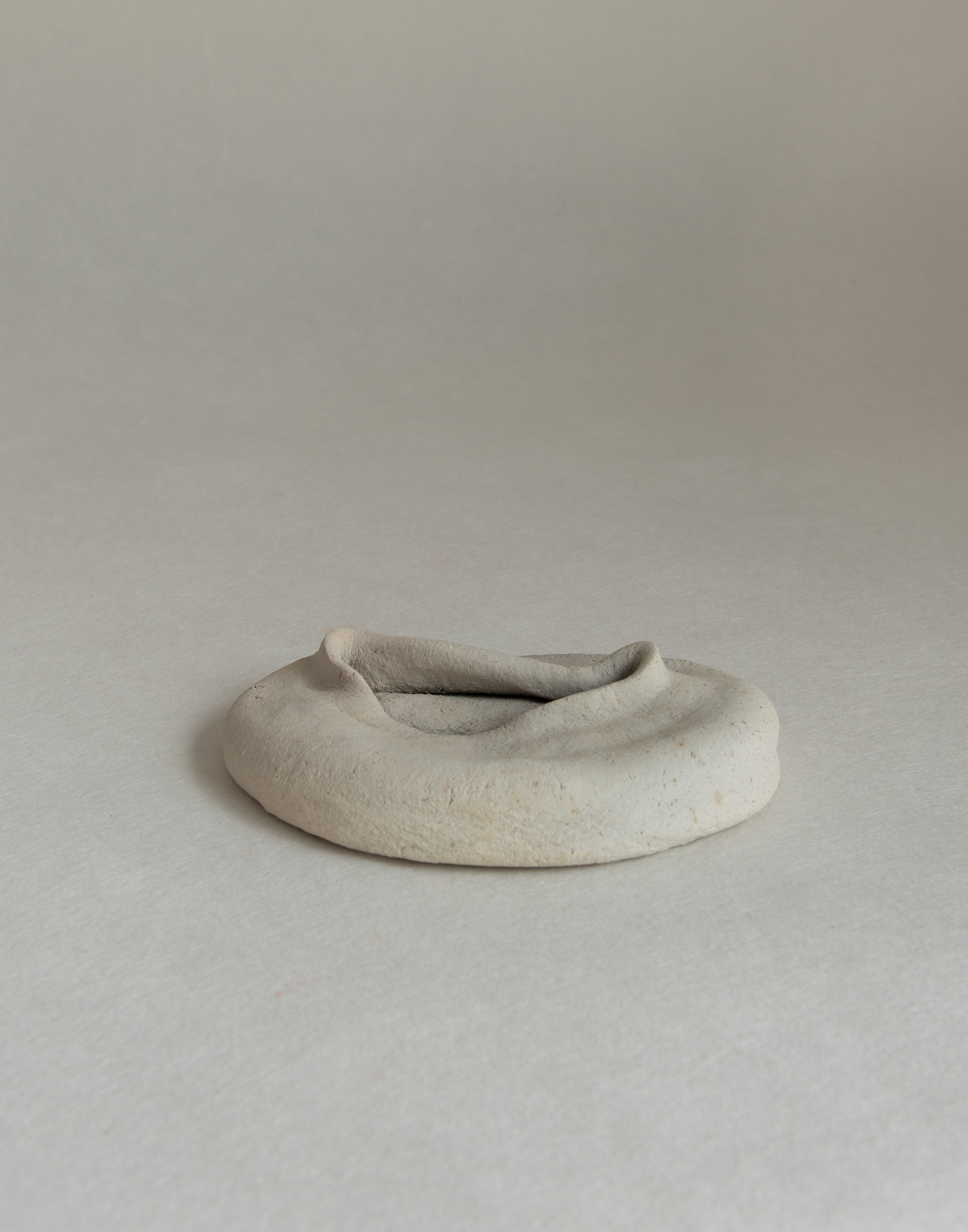 "At some point, I felt the urge to let a lump of wet clay fall—like fruit dropping from a tree." Miyakono Yasuda, from ”Untitled” Works in which vessels and jars, hand-shaped by her own hands, are dropped from a height and then fired in an open flame. The resulting forms, distorted by the forces of nature, seem to melt into the earth or quietly settle like resting animals. Draped in visceral folds and creases, they emanate a curious sense of levitation despite their weight. Born of earth, water, and fire, these pieces carry with them even the unseen forces of time and gravity—tucked into the very pleats of their surfaces. After relocating to Miyazaki in 2010, she encountered remnants of Jomon-era ruins in the region, which led her to explore ancient earthenware through both research and creation. Material: Clay, Sand, Shells, Stone Limited to 1 Size: 180mm x 130mm x 40mm |