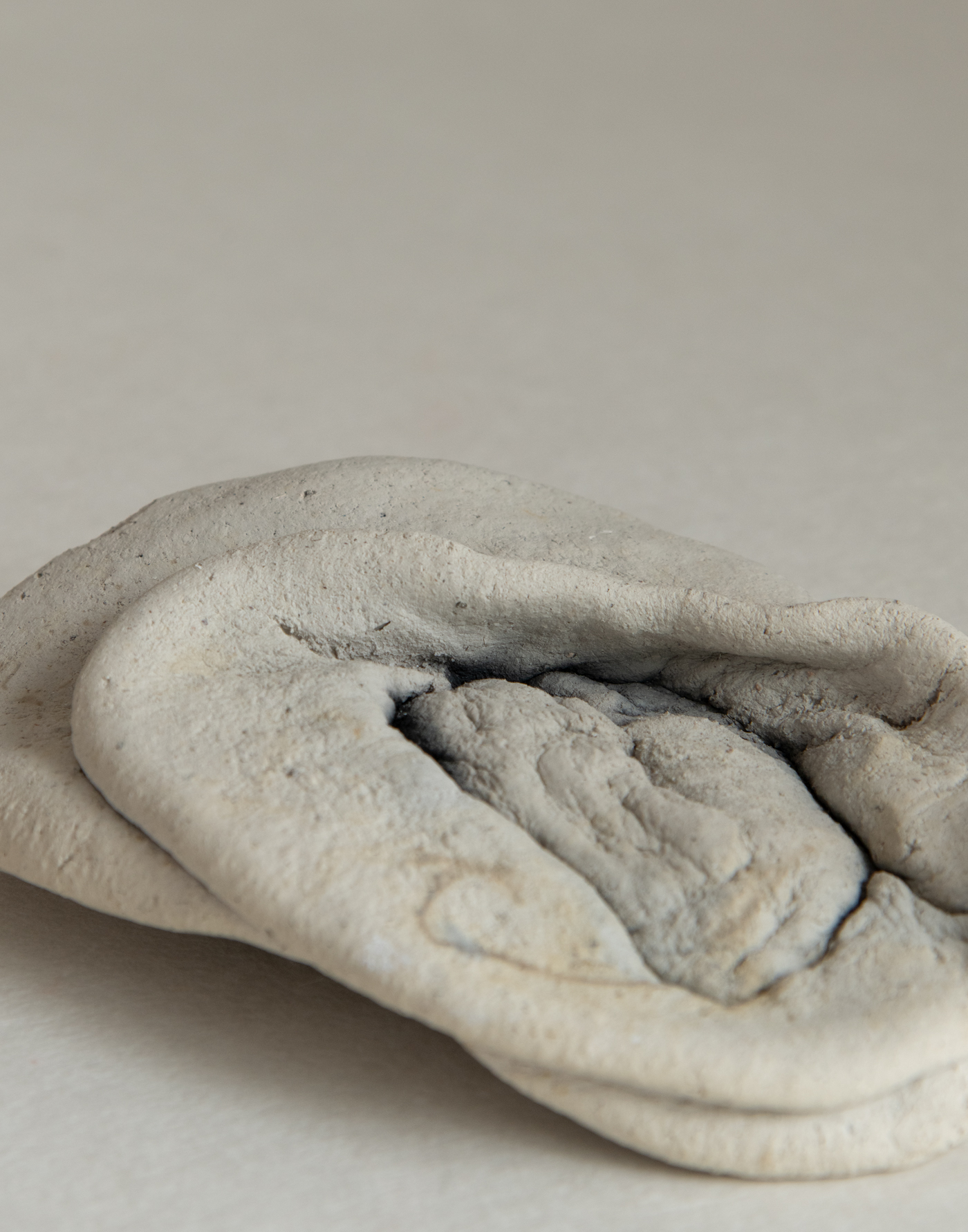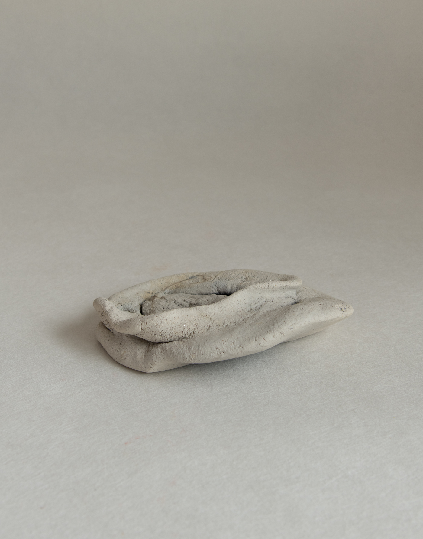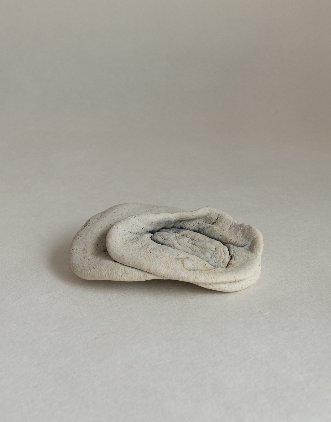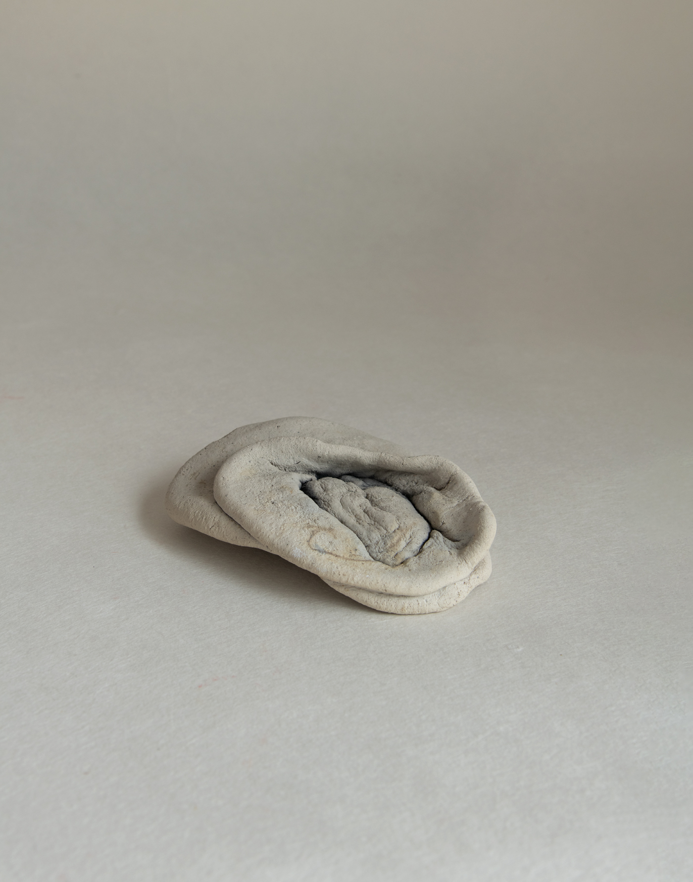 "At some point, I felt the urge to let a lump of wet clay fall—like fruit dropping from a tree." Miyakono Yasuda, from ”Untitled” Works in which vessels and jars, hand-shaped by her own hands, are dropped from a height and then fired in an open flame. The resulting forms, distorted by the forces of nature, seem to melt into the earth or quietly settle like resting animals. Draped in visceral folds and creases, they emanate a curious sense of levitation despite their weight. Born of earth, water, and fire, these pieces carry with them even the unseen forces of time and gravity—tucked into the very pleats of their surfaces. After relocating to Miyazaki in 2010, she encountered remnants of Jomon-era ruins in the region, which led her to explore ancient earthenware through both research and creation. Material: Clay, Sand, Shells, Stone Limited to 1 Size: 130mm x 170mm x 40mm |