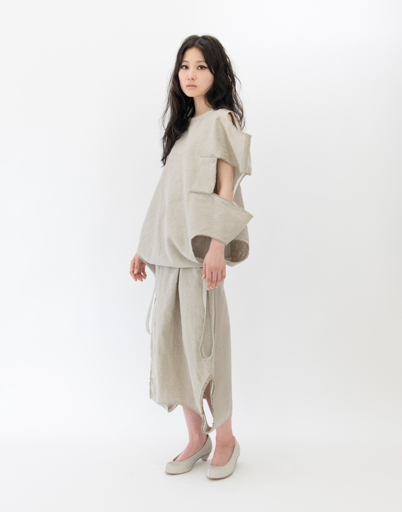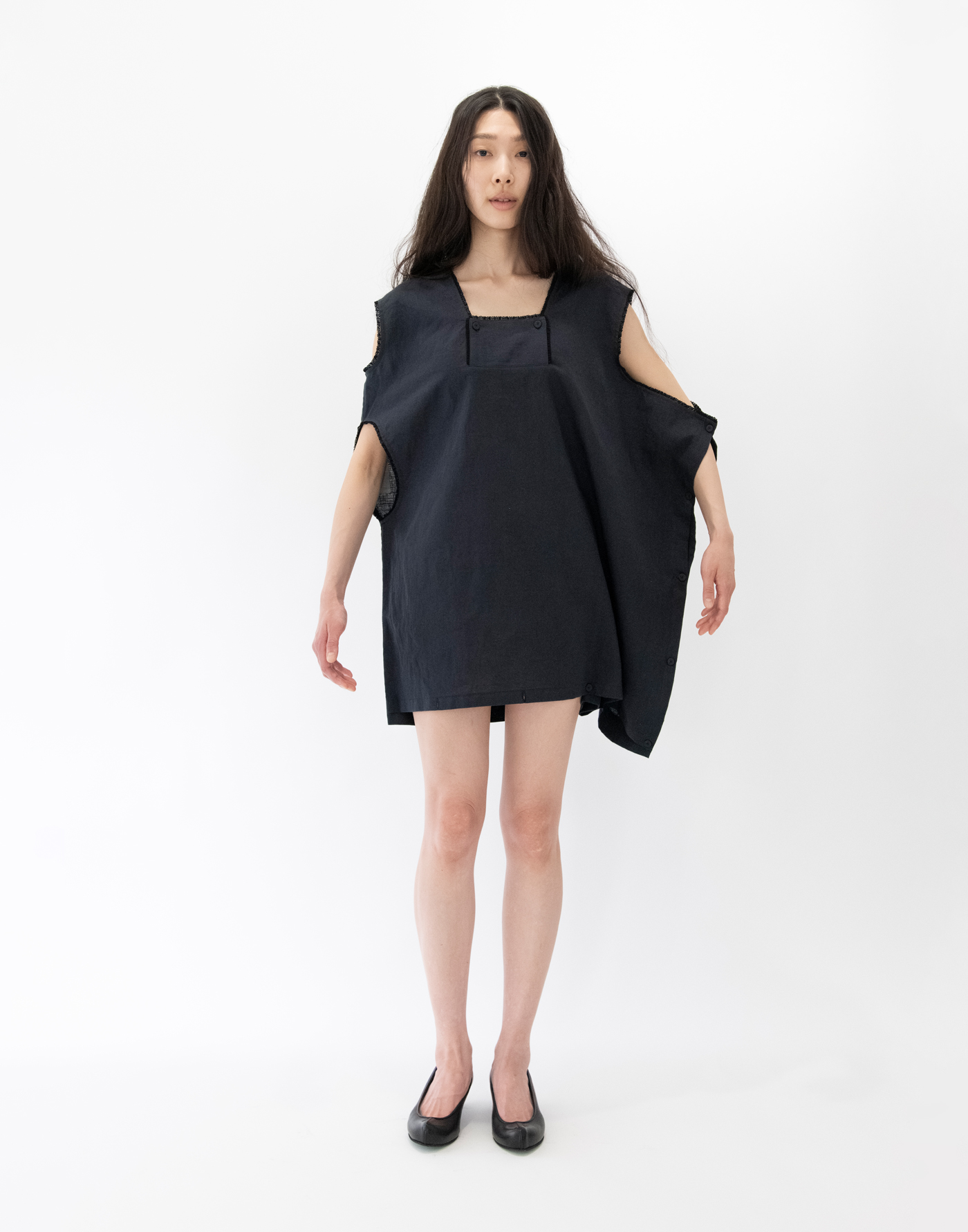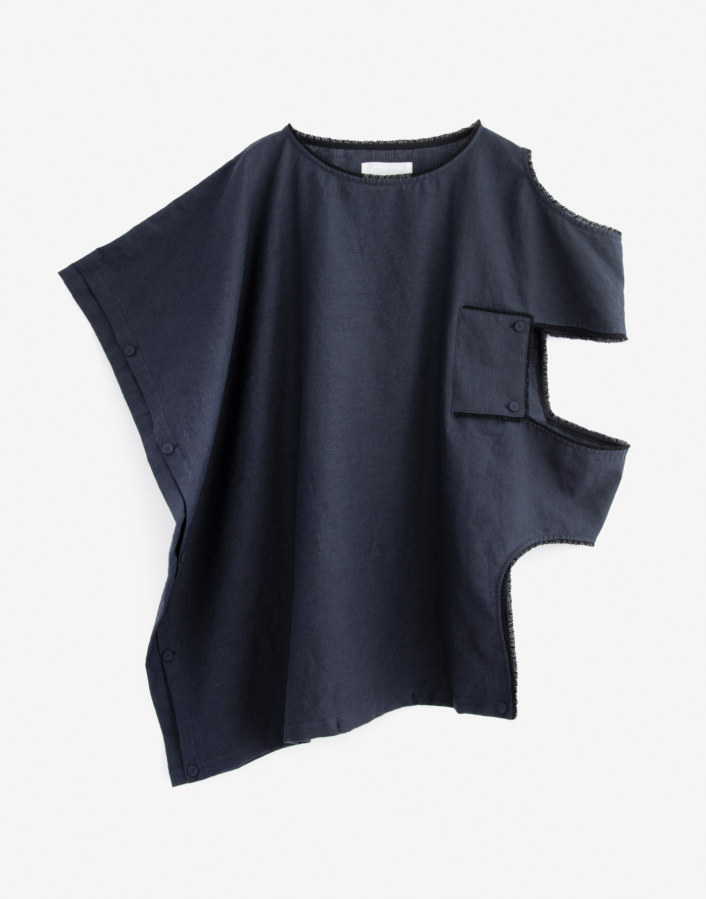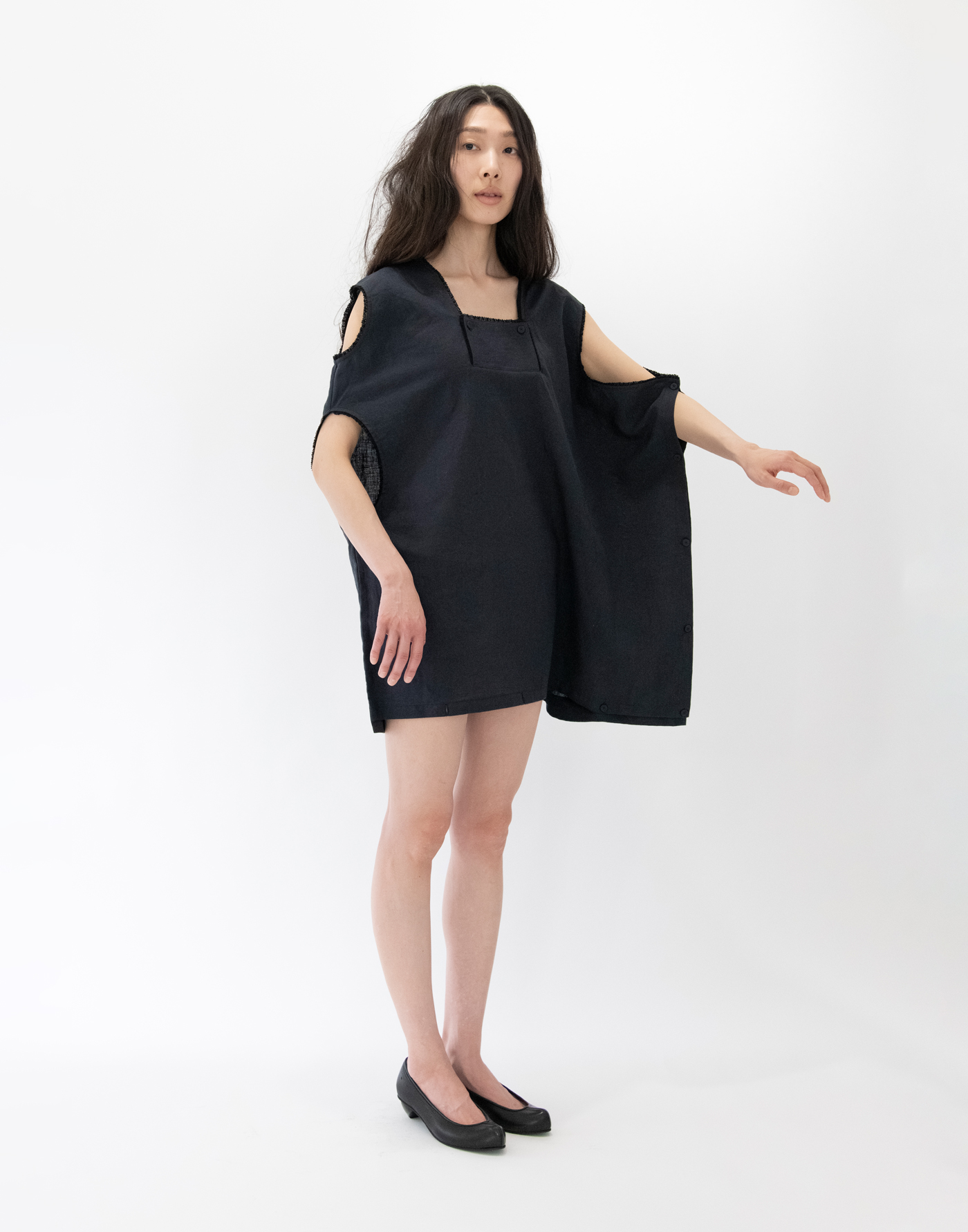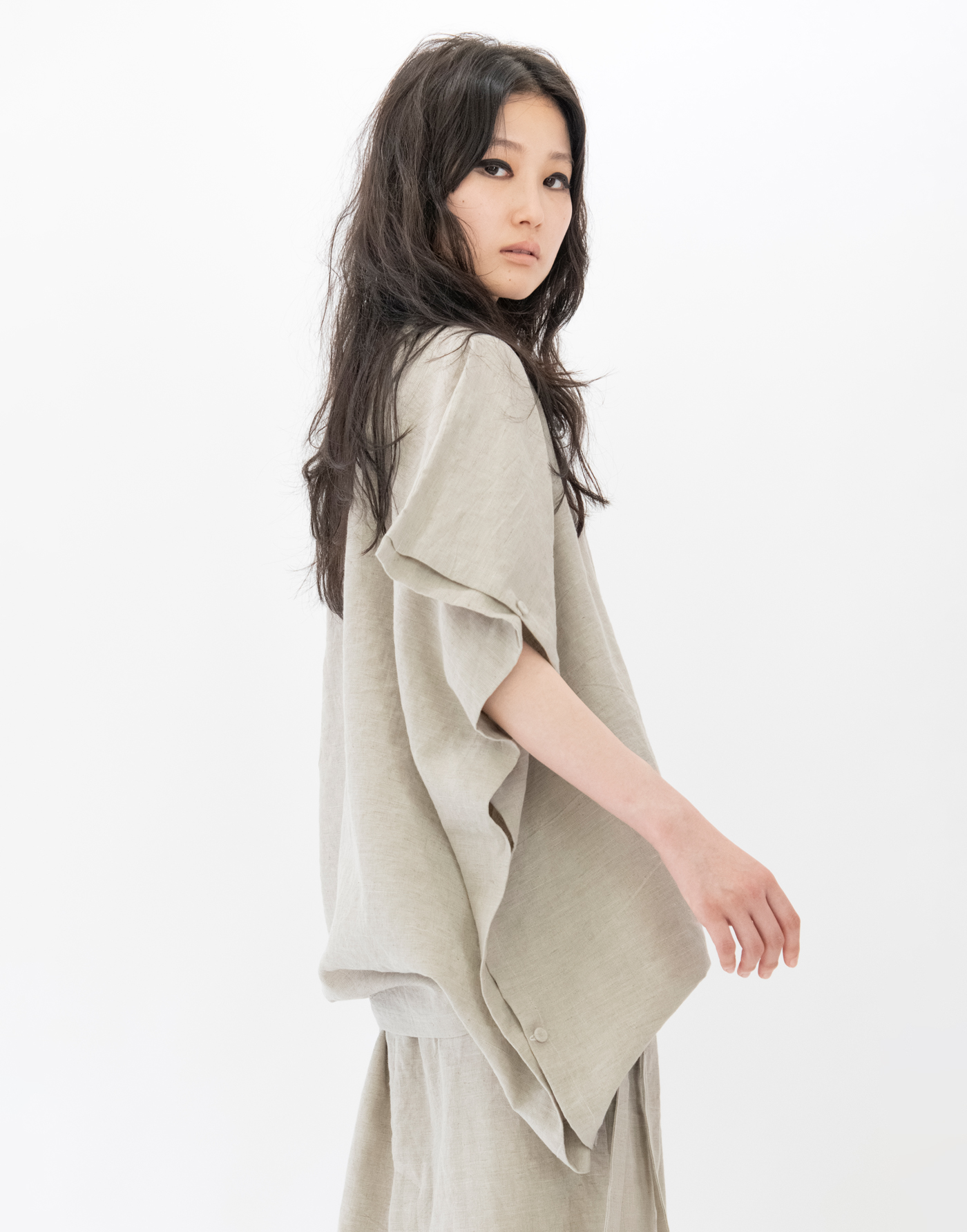 | Garment inspired by antique nightwear. Works by reconstructing the structure of 19th century European nightwear. Material is textured linen cotton ramie. The finish has an uneven, expressive look like an old cloth. Linen 55%, Cotton 29%, Ramie 16% Size: Free Length 71 / Width 76 *cm Black: Model height 171cm, wearing Size Free Gray: Model height 164cm, wearing Size Free Click here for inquiries regarding size. |