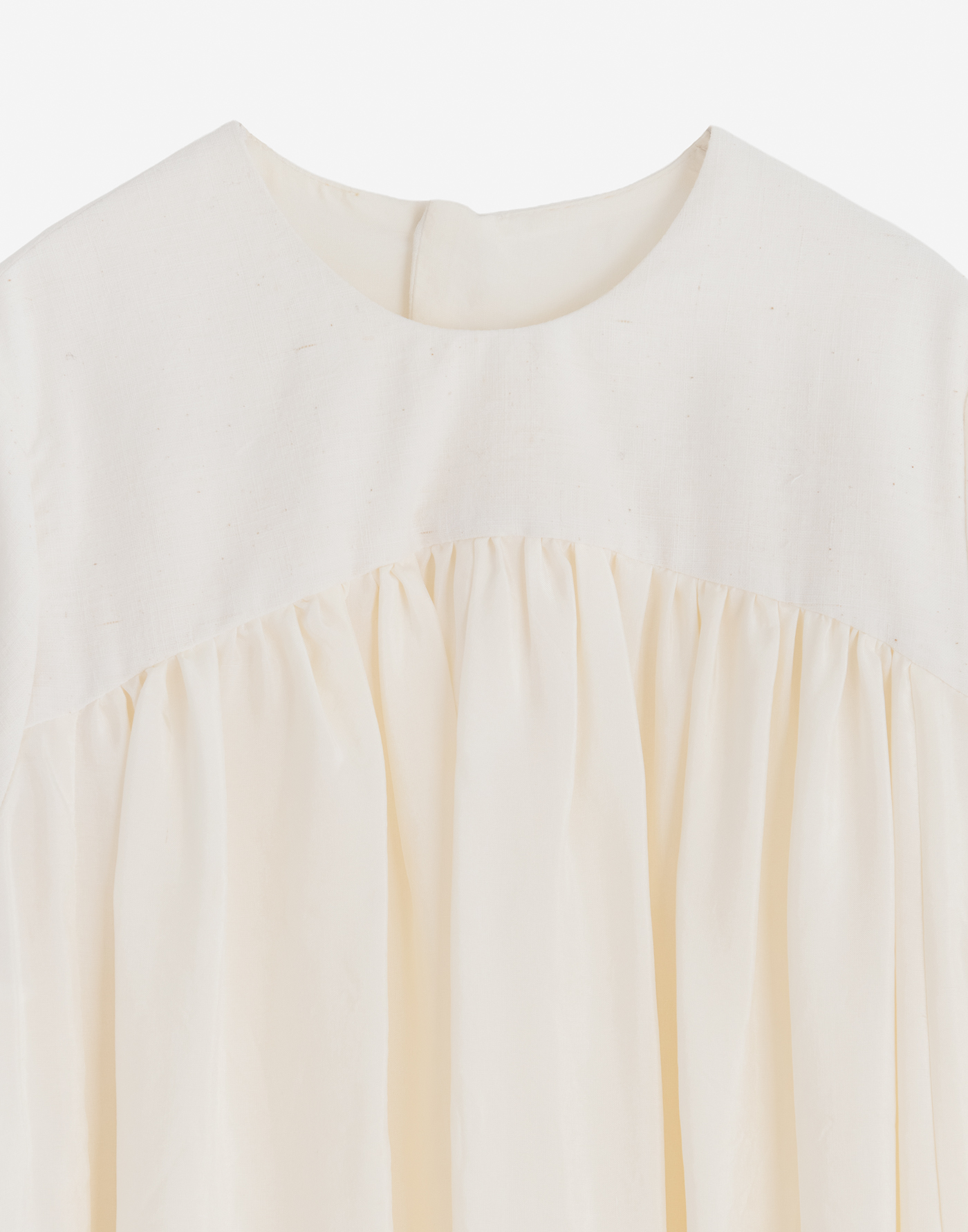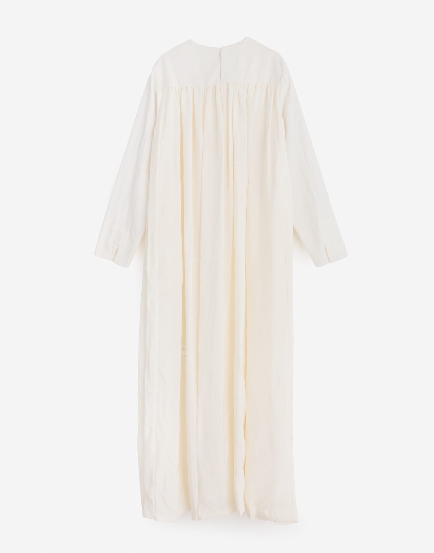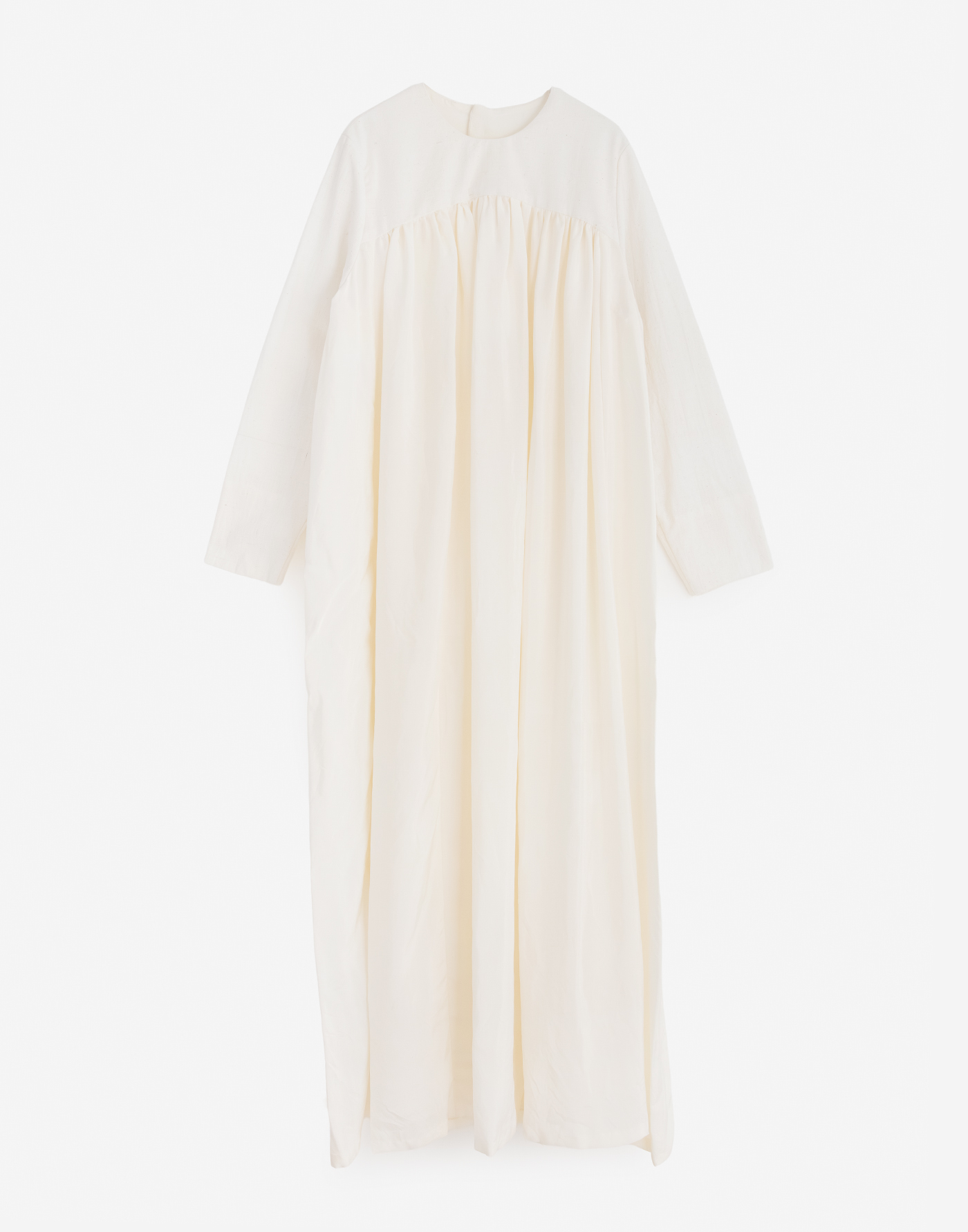 | An hand-woven old cotton from a Korean farmer It have been in a barn for a long time The expression that feels time is beautiful Combine with hand-woven silk and old cotton Yoke, Sleeve: Cotton 100% Body: Silk 100% Size: Free Length 129 / Chest width 53 / Shoulder width 38 / Sleeve length 56 / Cuff width 12 / Hem width 135 *cm Click here for inquiries regarding size. |
