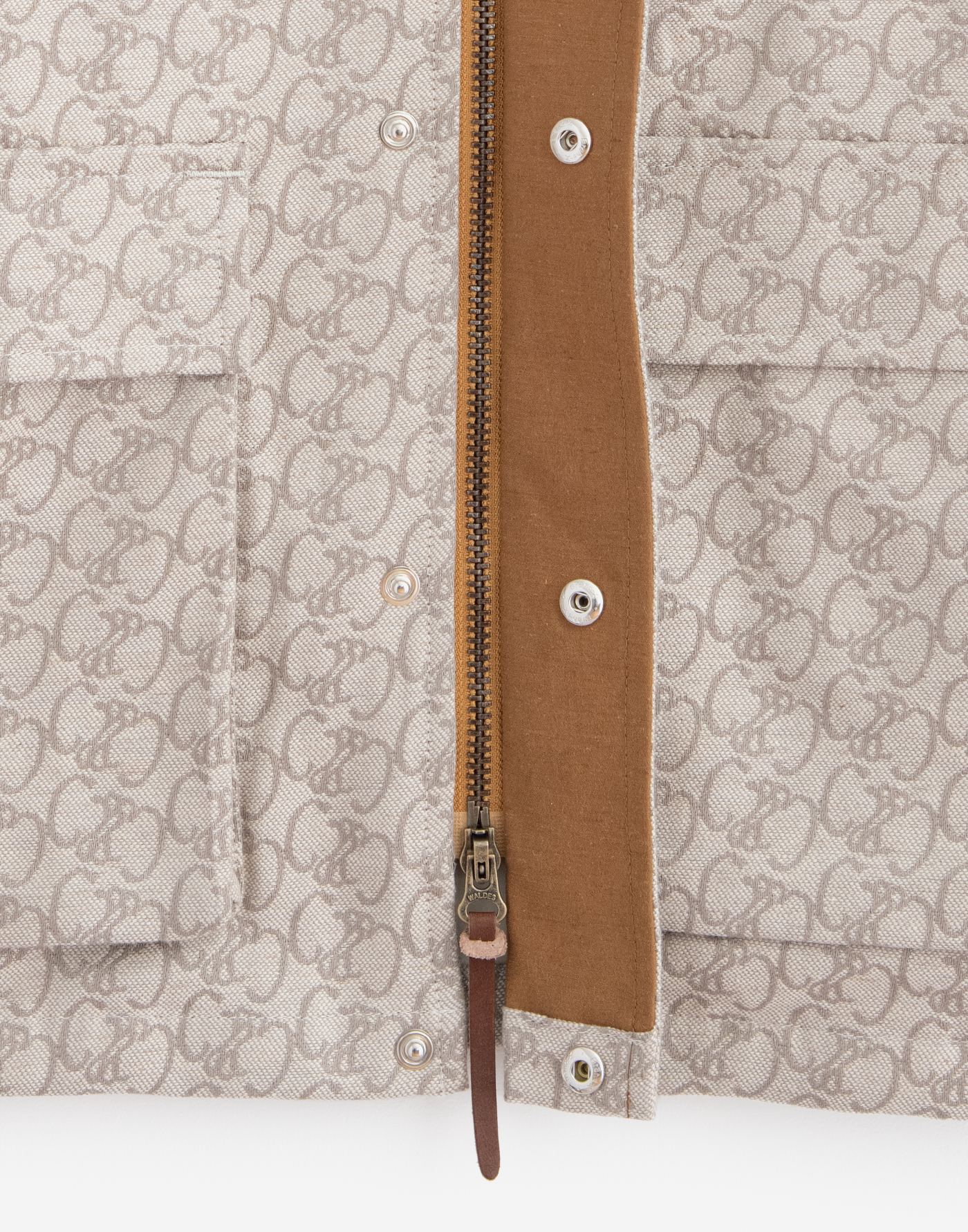 | Field coat inspired by the mountain coats of the 1970s. This unique design recreates an outdoor item in the form of a classic-looking monogram fabric. Mude of cotton linen jacquard with monogram. Wearing the garment reveals the fluffy and beautiful texture of the jacquard. The graphic design of the monogram is by Paris-based contemporary artist Christophe Brunckel. For walks in the woods and as a daily favorite. Cotton 83%, Linen 17% Lining: Cotton 100% Another fabric: cotton 80%, Flax 20% Size S Length 71 / Width 61 / Shoulder width 49 / Sleeve length 52 Size M Length 72 / Width 62 / Shoulder width 49.5 / Sleeve length 53.5 *cm Monogram × Brown: Model height 164cm, wearing Size M Monogram × Black: Model height 184cm, wearing Size L Click here for inquiries regarding size. |