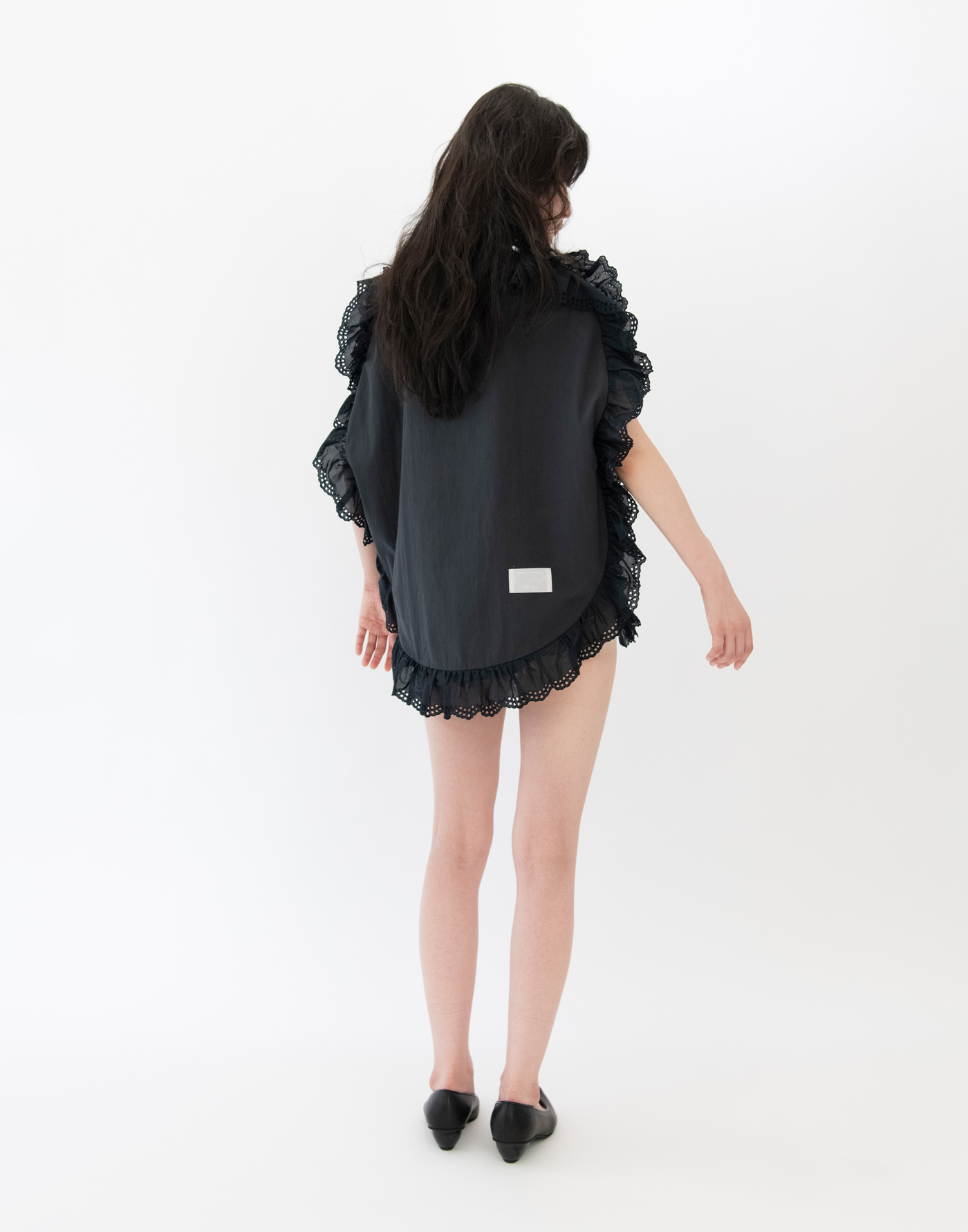 | Garment inspired by antique pillowcases. Works by reconstructing the structure of 19th century European pillowcases. Material is a high-density woven cotton linen ramie. Natural washed texture finish. Cotton 88%, Linen 6%, Ramie 6% Size: Free Length 68.5 / Width 63 *cm Model height 164cm, wearing Size Free Click here for inquiries regarding size. |