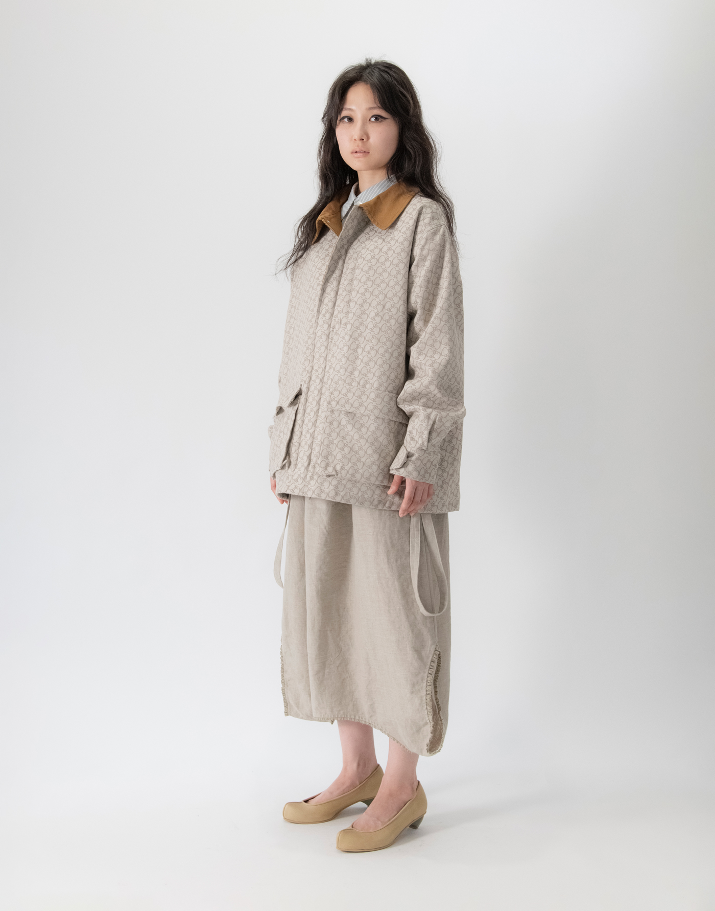 | Garment inspired by antique nightwear. Works by reconstructing the structure of 19th century European nightwear. Material is textured linen cotton ramie. The finish has an uneven, expressive look like an old cloth. Linen 55%, Cotton 29%, Ramie 16% Size: Free Length 80.5 / Waist (Maximum) 122 as a skirt Length 80.5 / Width 61 as a dress *cm Model height 164cm, wearing Size Free Click here for inquiries regarding size. |