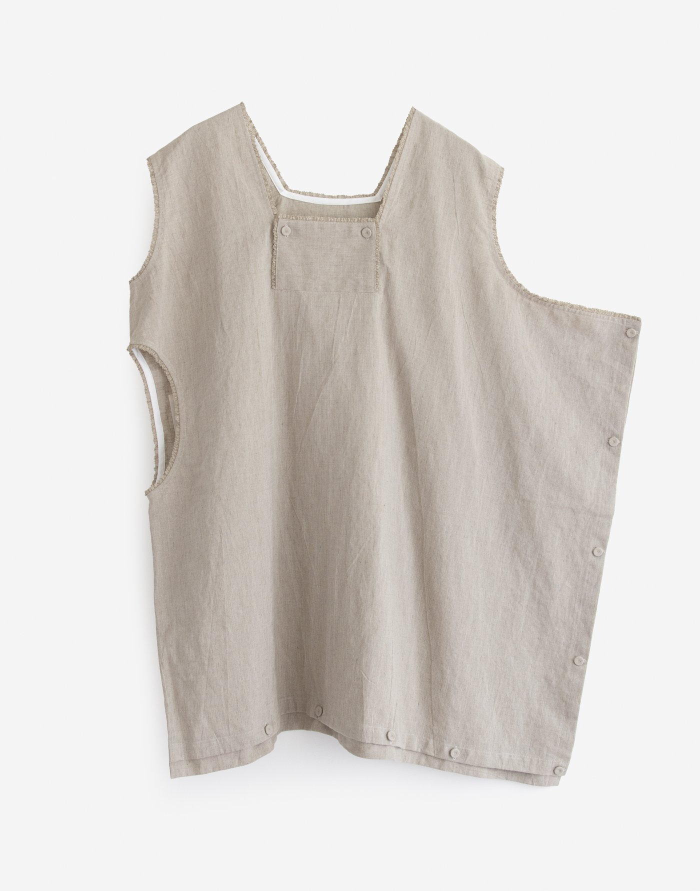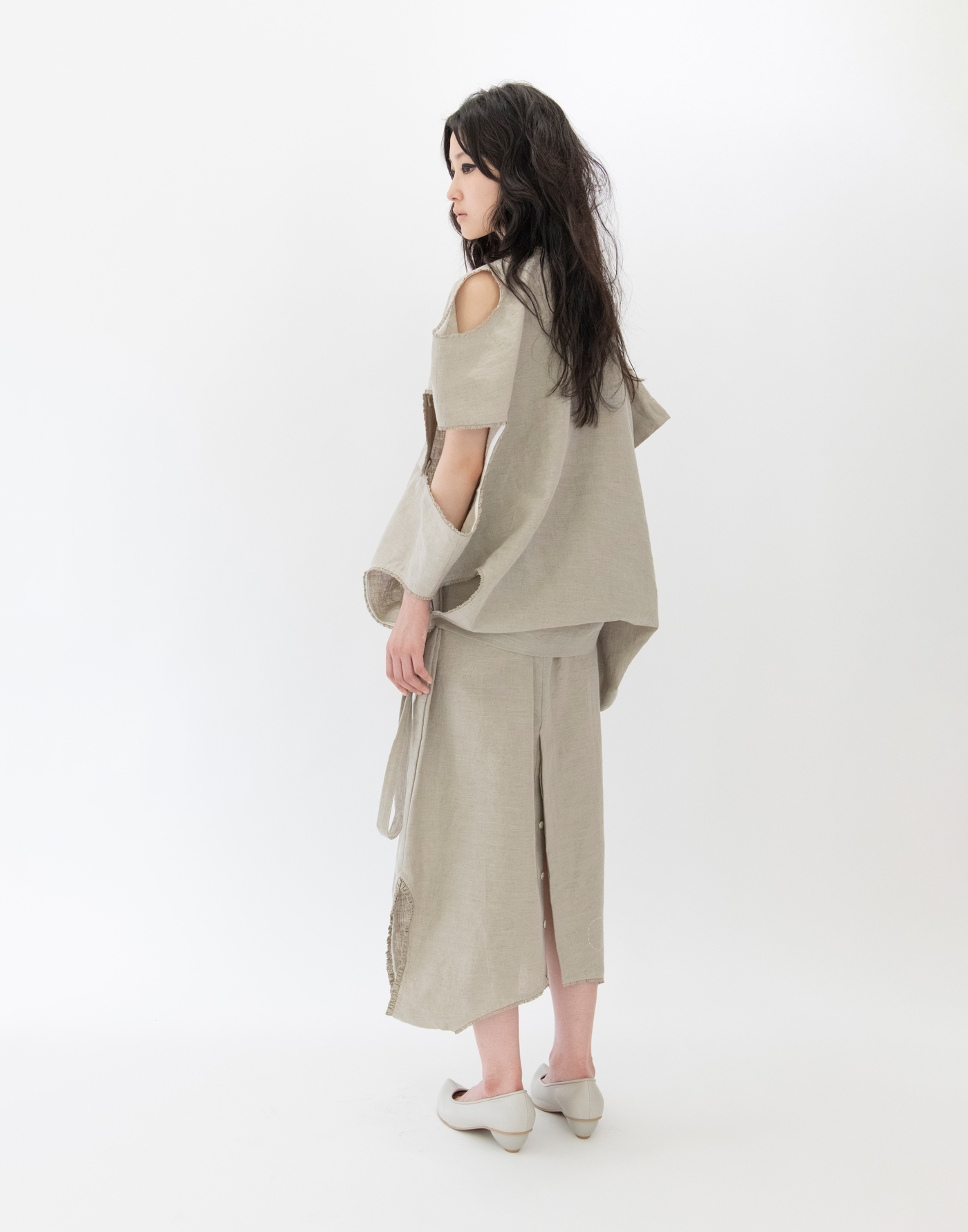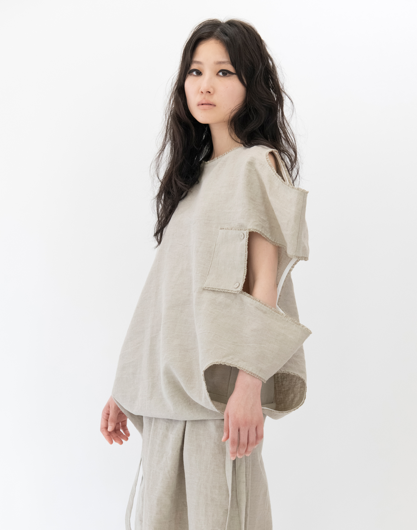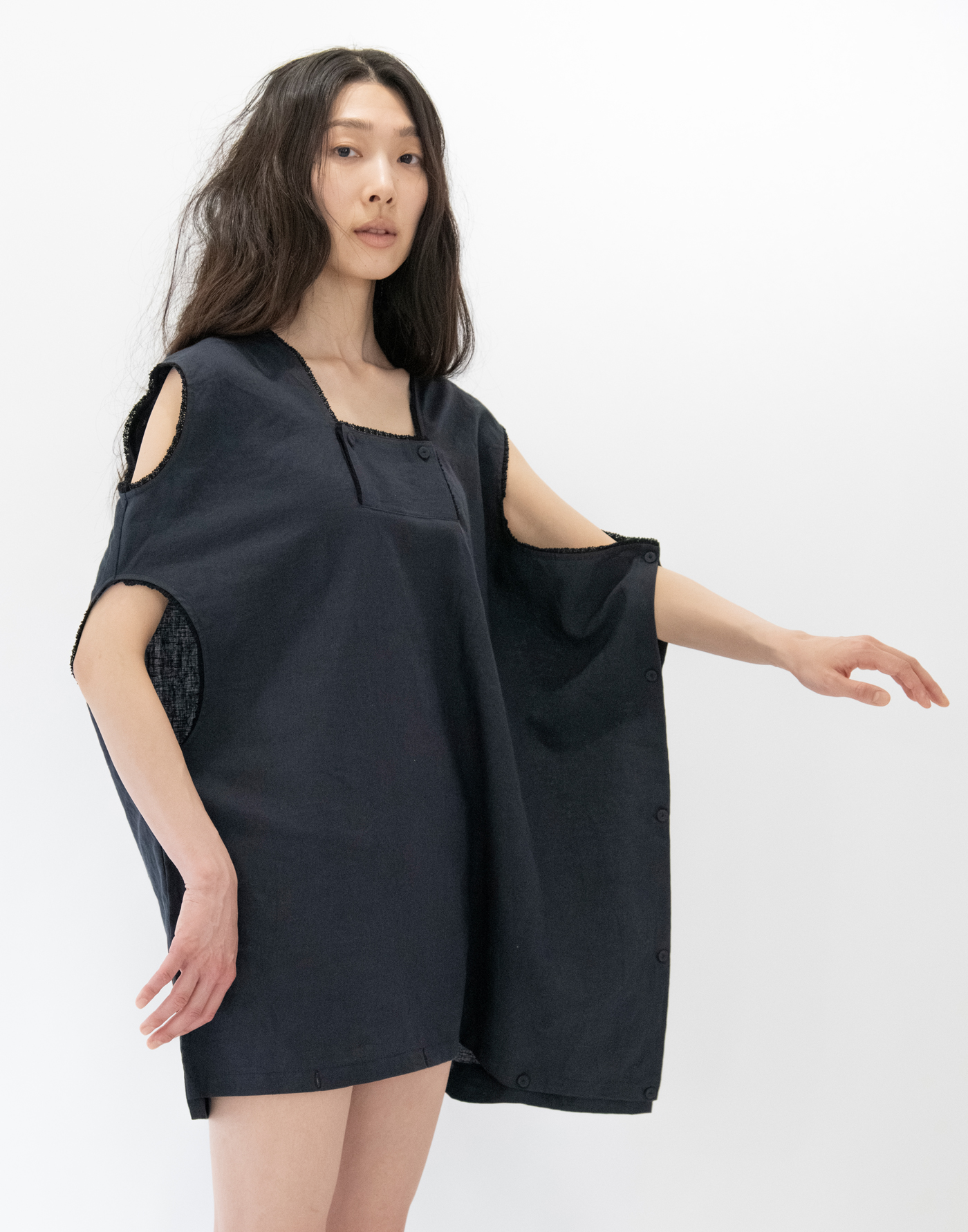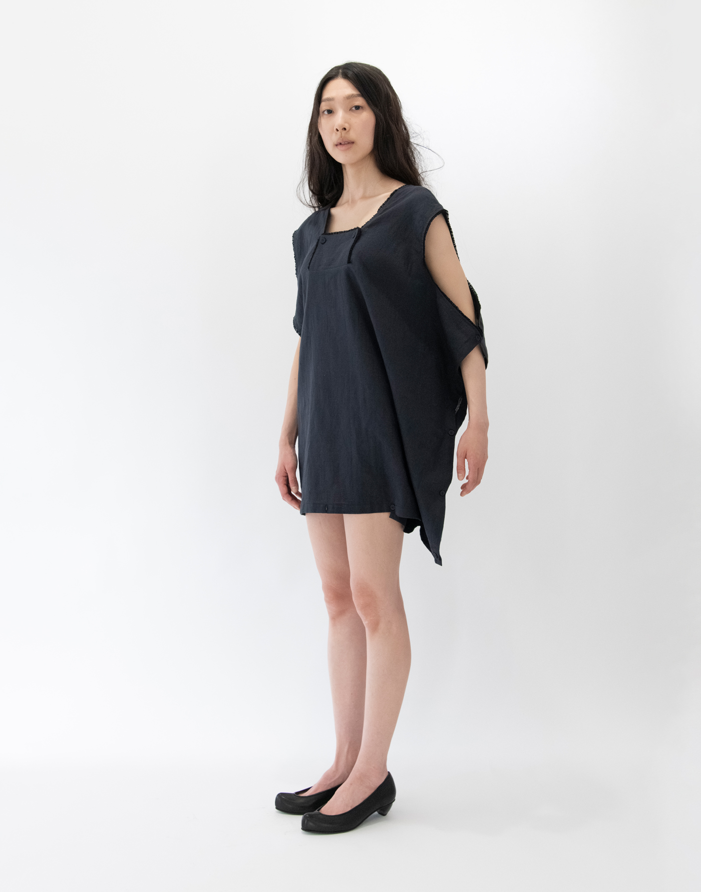 | Garment inspired by antique nightwear. Works by reconstructing the structure of 19th century European nightwear. Material is textured linen cotton ramie. The finish has an uneven, expressive look like an old cloth. Linen 55%, Cotton 29%, Ramie 16% Size: Free Length 71 / Width 76 *cm Gray: Model height 164cm, wearing Size Free Black: Model height 171cm, wearing Size Free Click here for inquiries regarding size. |