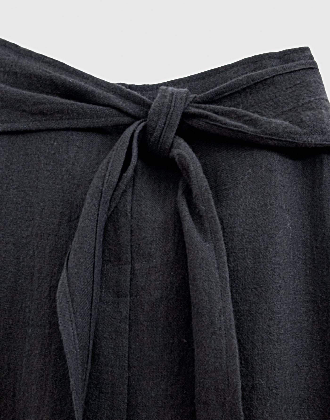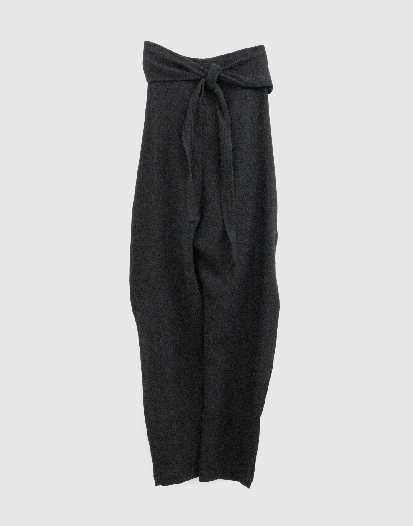 | Made from twill weave linen-wool. Wrapped pants. White, Black: Linen 90%, Wool 10% Gray: Linen 87%, Wool 13% Specifications: Slit pockets on both sides Size: Free Waist (Maximum) 124 / In-Leg 67.5 / Thigh circumference 68 *cm Click here for inquiries regarding size. |