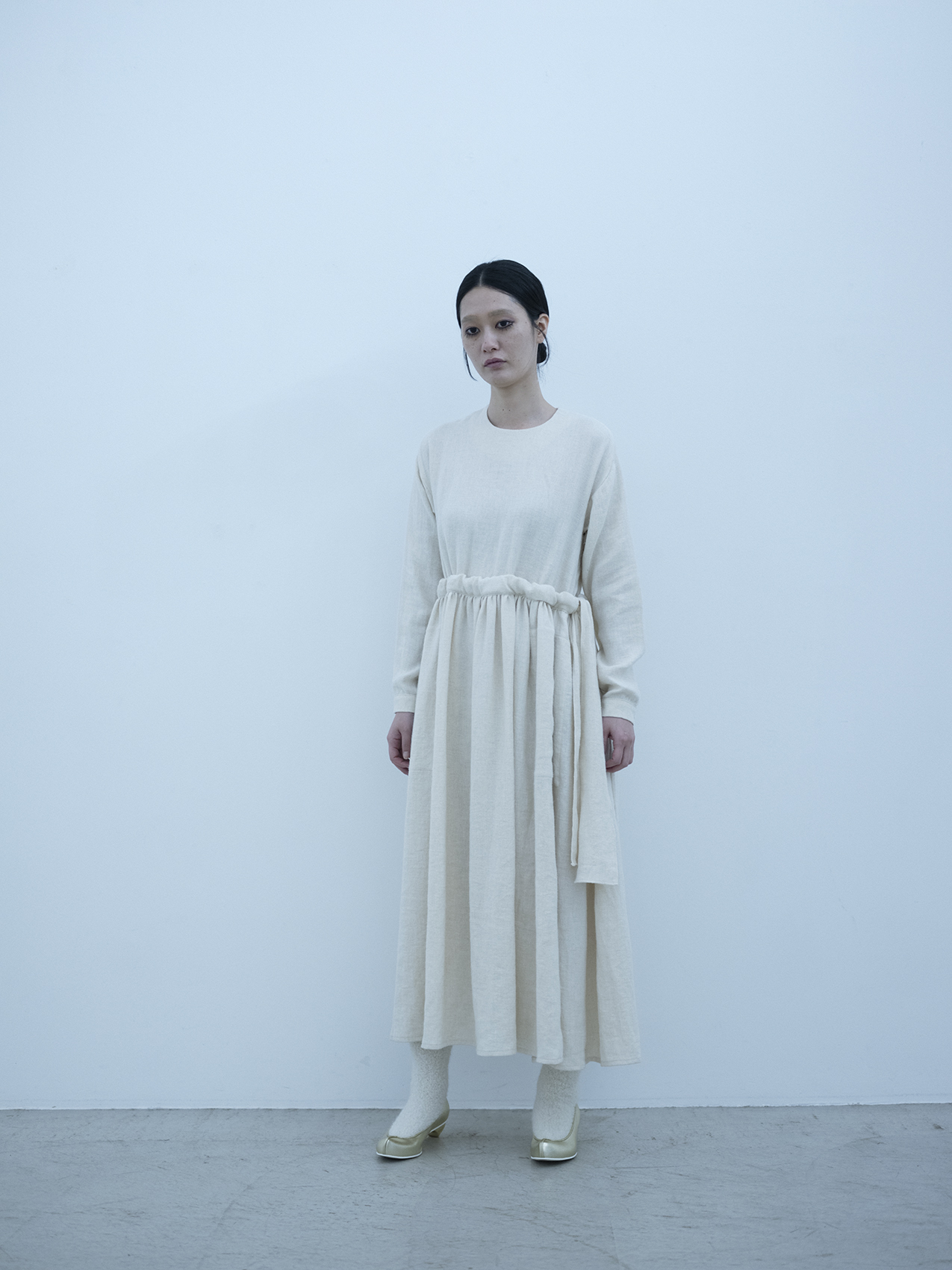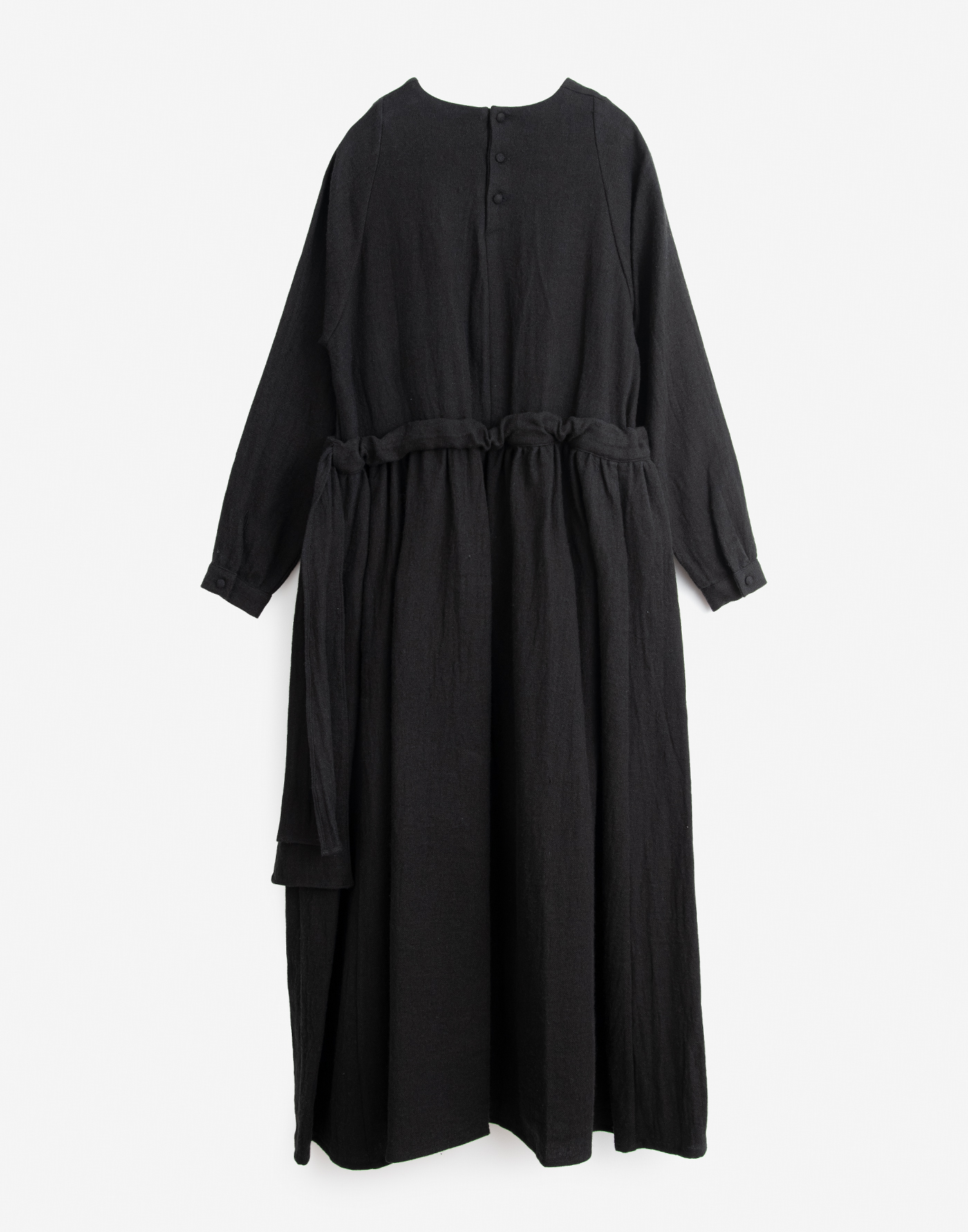 | Made from twill weave linen-wool. Farmer dress. Linen 90%, Wool 10% Specifications: Slit pockets on both sides Size: 0 Length 122 / Width 48 / Cuff from front neck point (through Shoulder point) 75 Size: 1 Length 125.5 / Width 50 / Cuff from front neck point (through Shoulder point) 77.5 *cm Model height 168cm, wearing size 1 Click here for inquiries regarding size. |