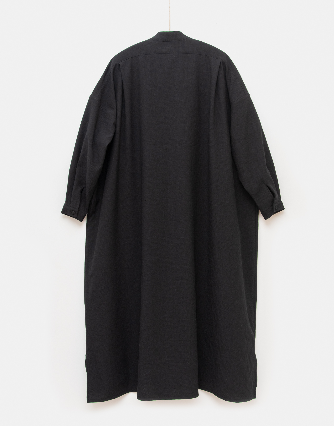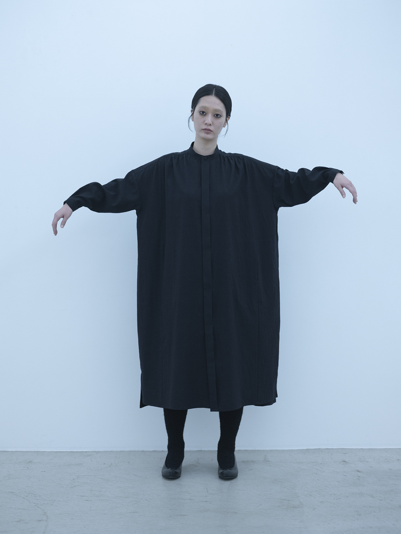 | This glen check is a combination of merino wool, linen, and cotton. Cotton yarns are slowly spun on an 18th century English-style spinning machine developed in the early days of the Industrial Revolution. The glen check is woven on a shuttle loom modeled on the principles of hand-weaving. An elegant gathered shirtdress. Wool 45%, Linen 29%, Cotton 26% Specifications: Slit pockets on front. Size 0 Length 119 / Width 79 / Cuff from front neck point (through Shoulder point) 75 Size 1 Length 121 / Width 80 / Cuff from front neck point (through Shoulder point) 76.5 *cm Model height 168cm, wearing size 1 Click here for inquiries regarding size. |