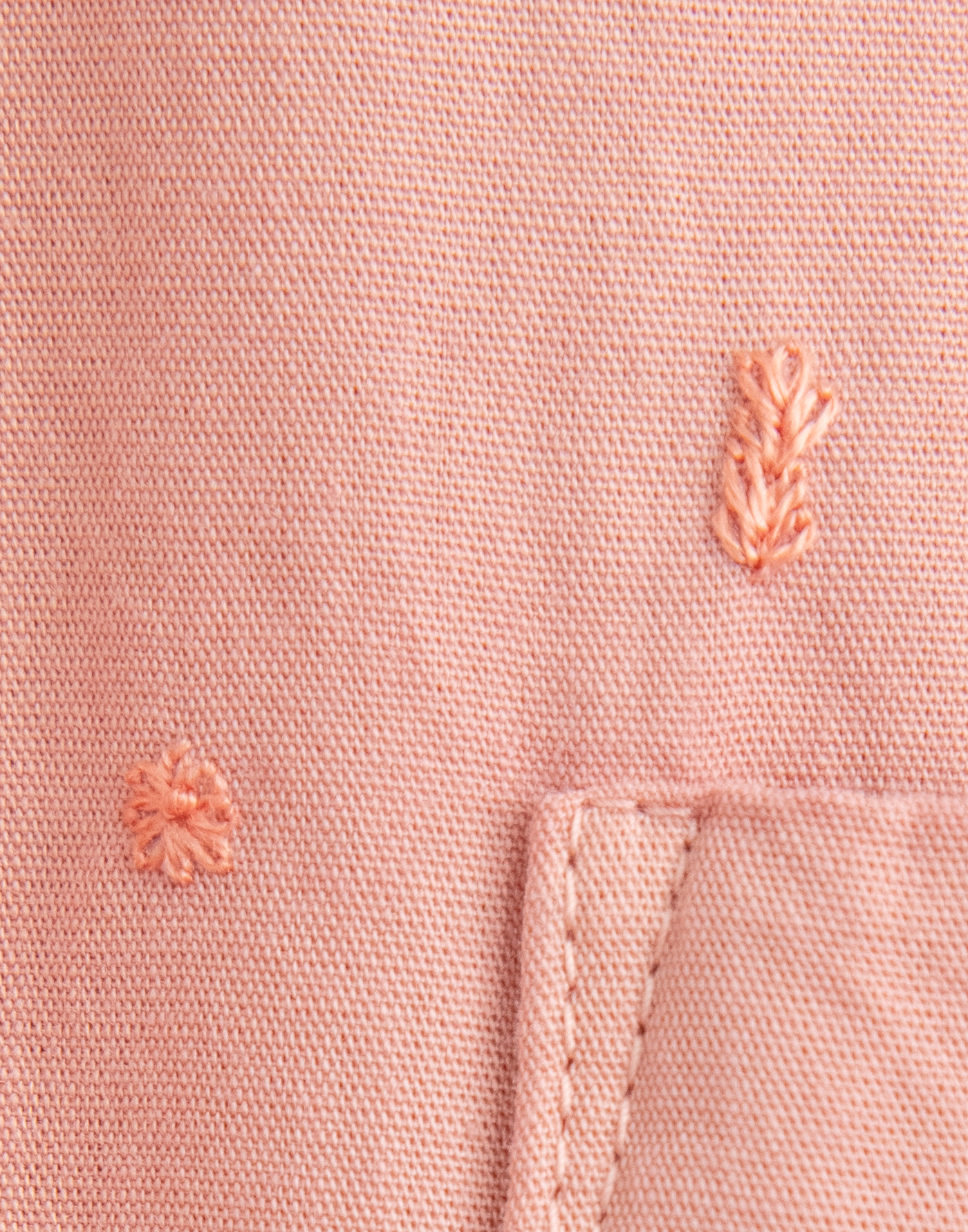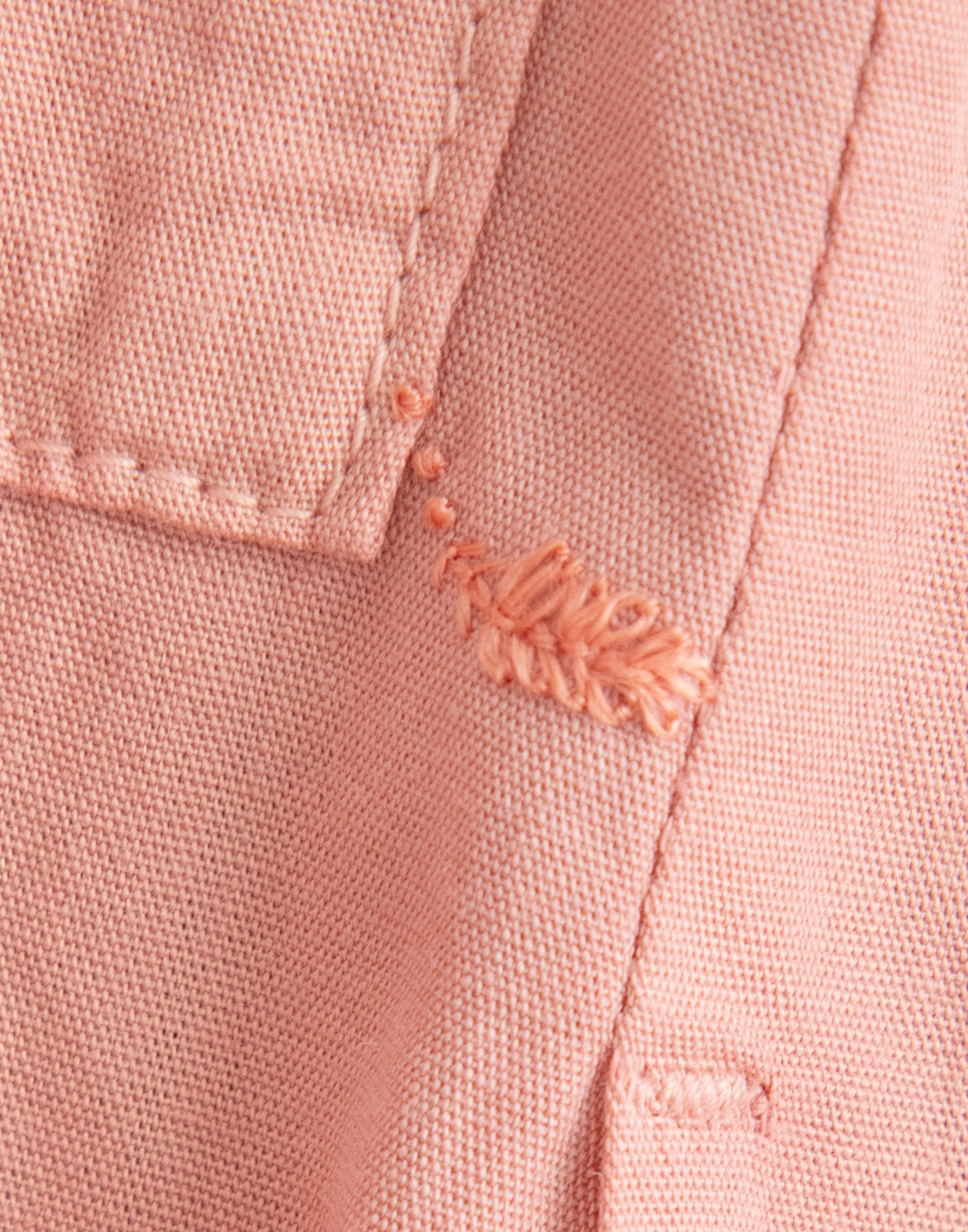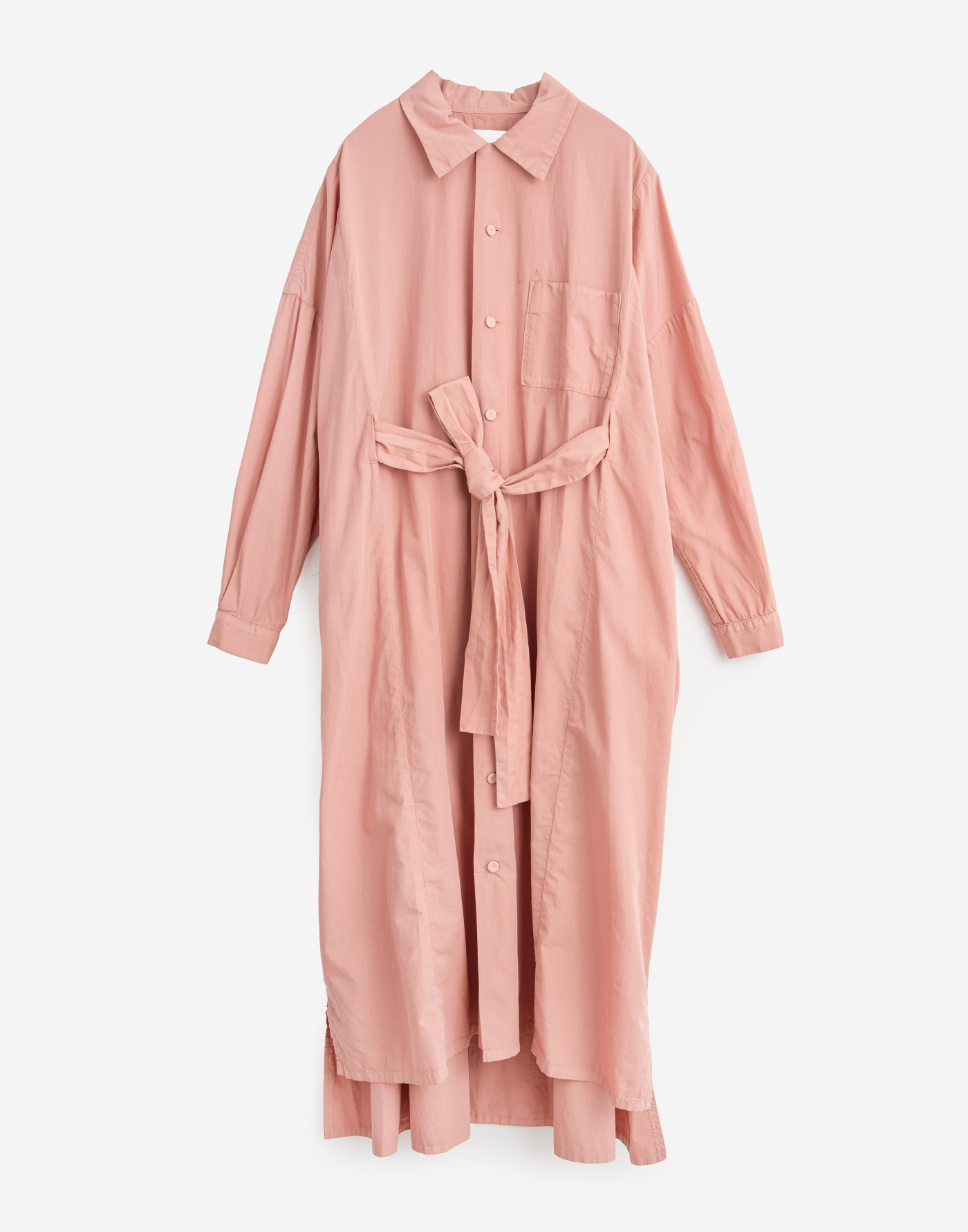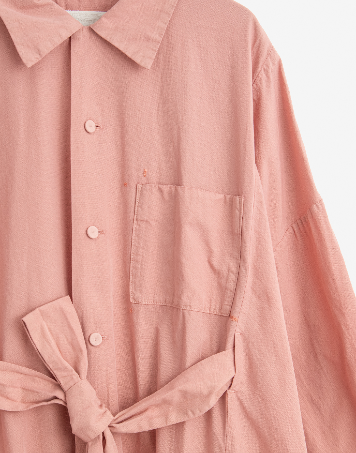 | Kaoru Yokoo The Awakening Universe We are pleased to present repaired the clothes collection of Cosmic Wonder with Kaoru Yokoo “The Awakening Universe”. From the Cosmic Wonder 2021collection “Days of light”, Yokoo will present the world of repairs with beautiful and harmonious humor. Cosmic Wonder’s clothing which has dyed natural materials occasionally some things that can not be sold due to color spots and fabric cracks. Kaoru Yokoo will perform art handwork such as embroidery and knitting to breathe new breath to them. Big silhouette open-collared shirt dress with a belt to mark the waist in the center of the front. The piece-dyeing process produces subtle variations of color. Color is Rose crystal. Organic cotton 100% Size: 0 Length 121 / Width 75 / Shoulder width 68 / Sleeve length 37.5 *cm Click here for inquiries regarding size. |