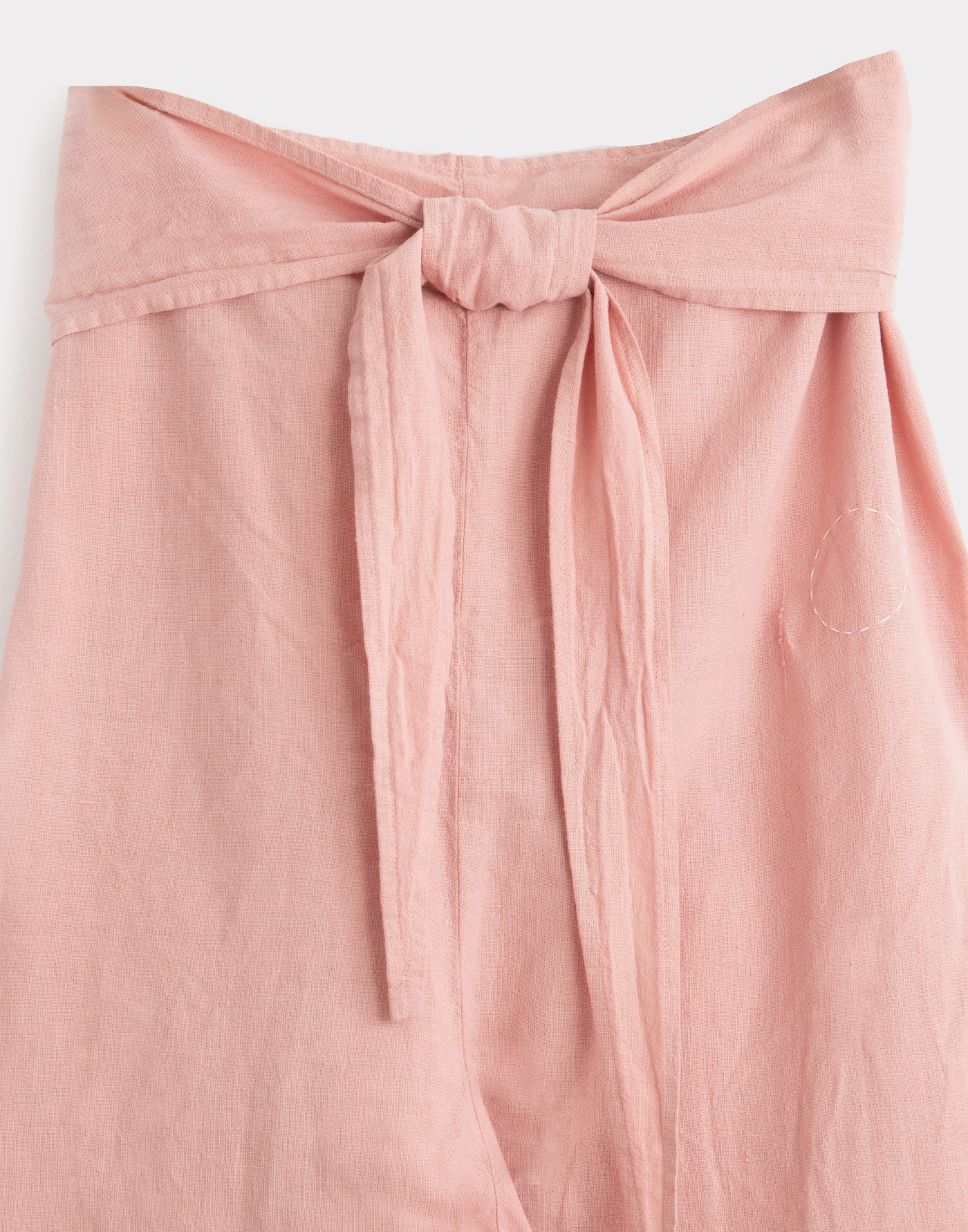 | South Indian cotton is hand-spun and hand-woven in Bengal. A rough and idyllic cotton cloth wrapped pants. The piece-dyeing process produces subtle variations of color. Color is Rose crystal. *The characteristics of Indian hand-woven cloth include nep yarn, uneven weaving, and thread adding. Cotton 100% Size: Free Waist (Maximum) 124 / Outseam 114 / Inseam 64.5 / Thigh circumference 70 *cm Click here for inquiries regarding size. *This item with different prices for each color. Price will be displayed when you choose color. *Due to the nature of dyeing, unevenness in color. |