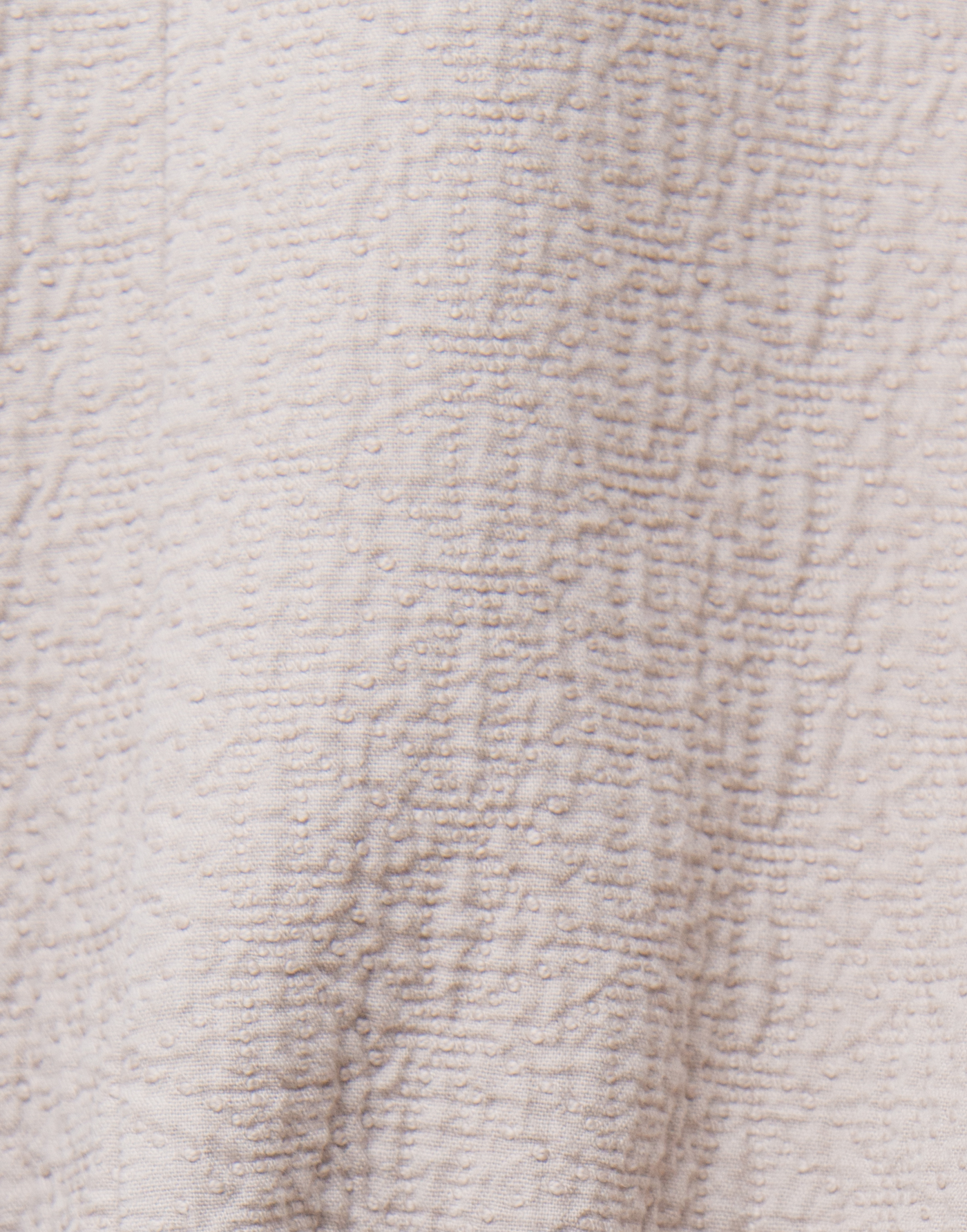 | Feel the infinite expanse of light through sacred geometry. Flower of life stitch weaving. Made with organic cotton yarn. A folk design where past and present meet. Colors are piece dyed. Rose soil by sharinbai dyeing and cochineal dyeing and Earth soil by mud dyeing of Amami Oshima. Reactive dye is Earthenware. Clothes that extend into space. Spiritual vessels for bright days. Cotton 100% (Organic cotton 100%) Specifications: Slit pockets on both sides Size: S Length 86 / Width 61.5 / Shoulder width 56.5 Size: L Length 88 / Width 71.5 / Shoulder width 65 *cm Model height 171cm, wearing size 1 Click here for inquiries regarding size. *Due to the nature of dyeing, unevenness in color. *After repeated wear, the color will fade like wrinkles and change into a unique texture. |