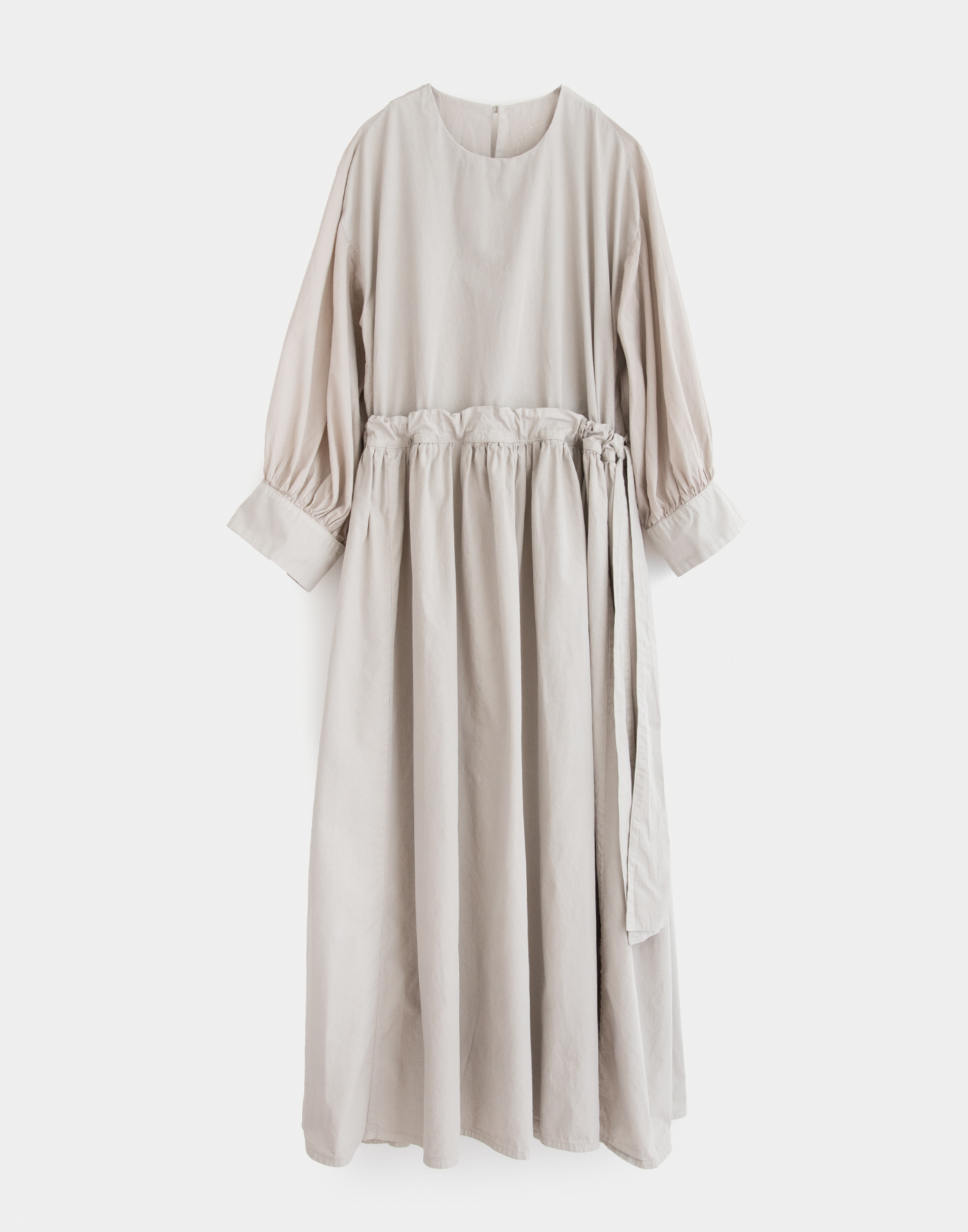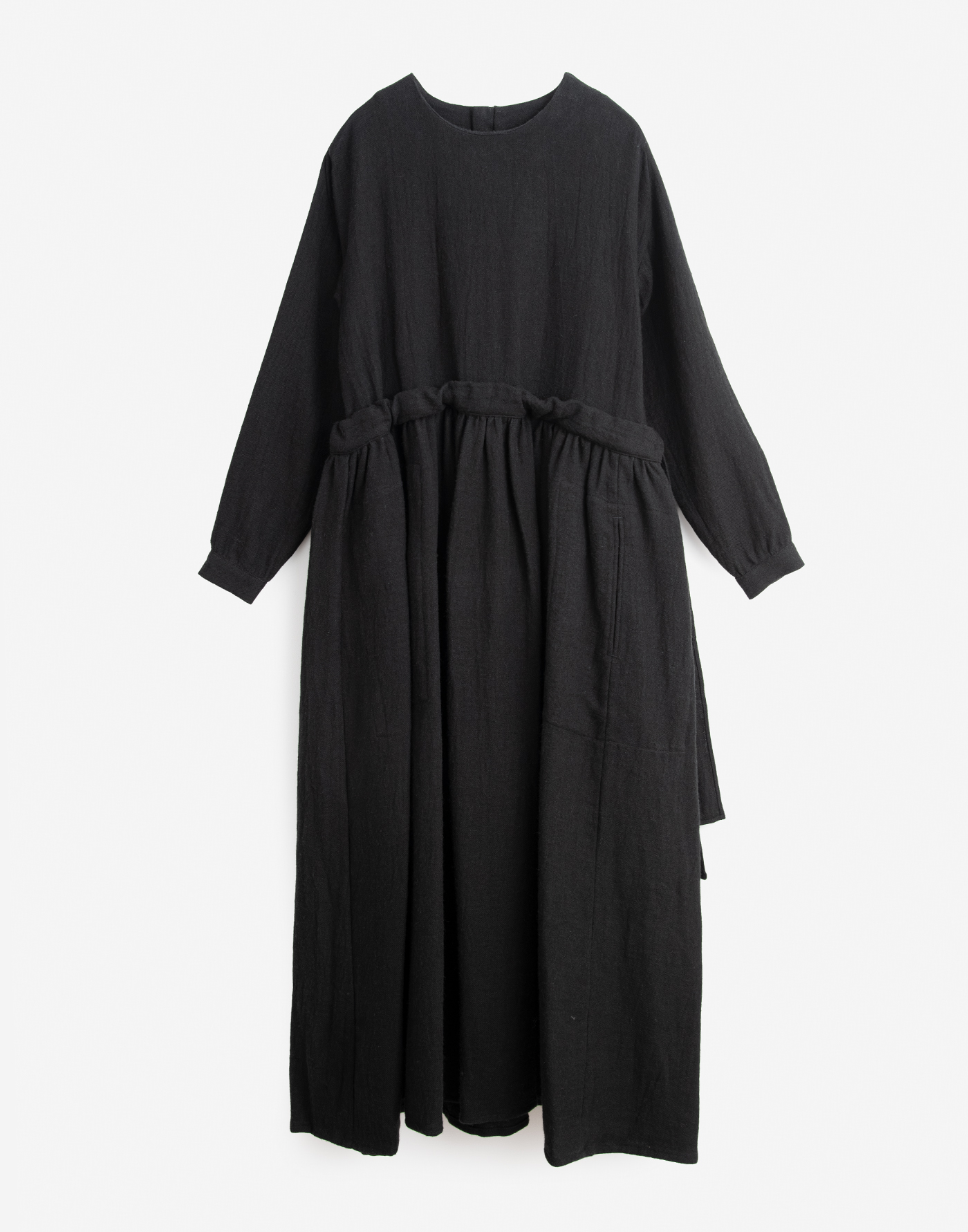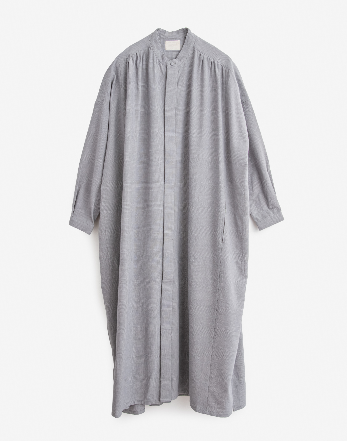 Light merino wool linen cotton glencheck elegant gathered shirt dress