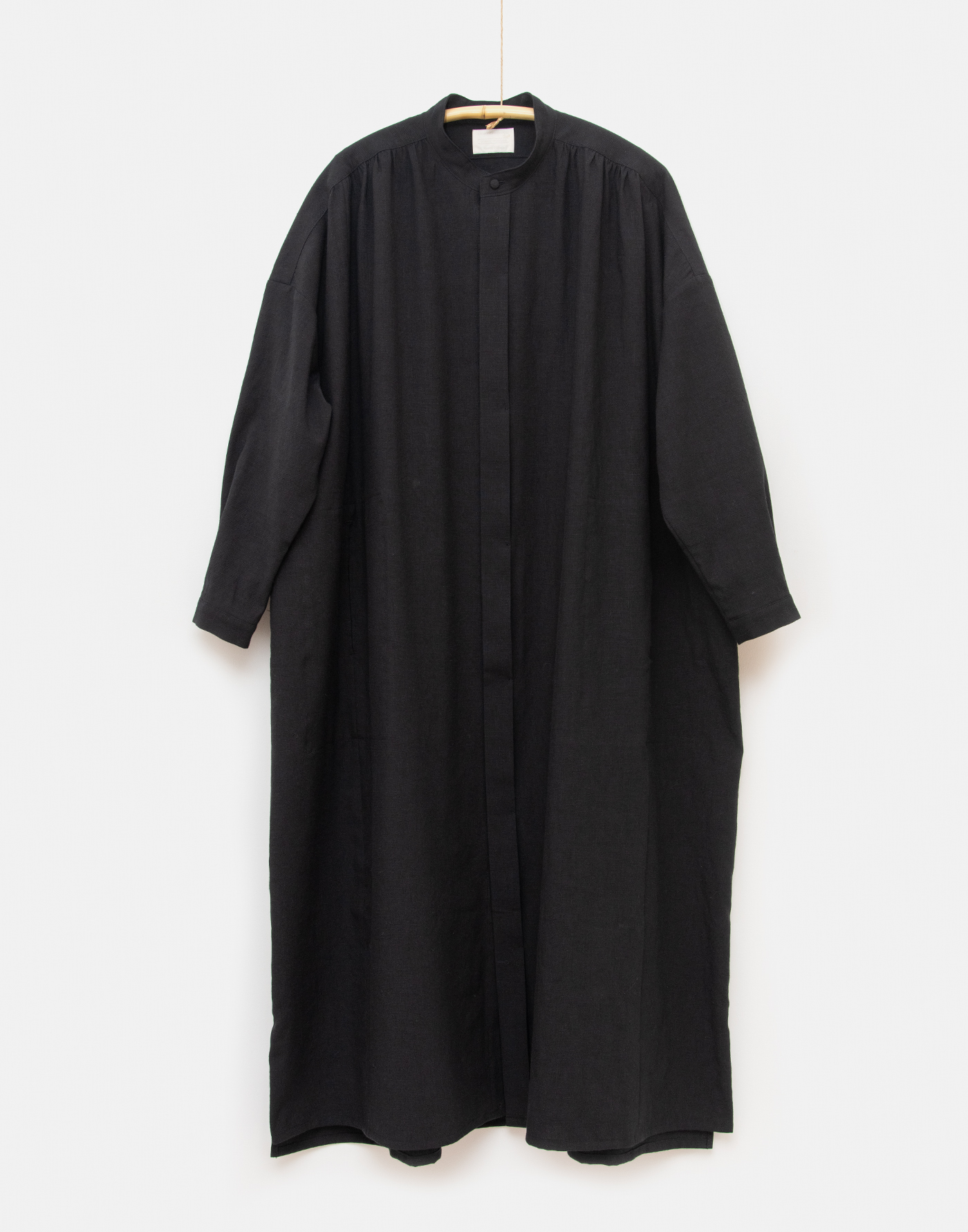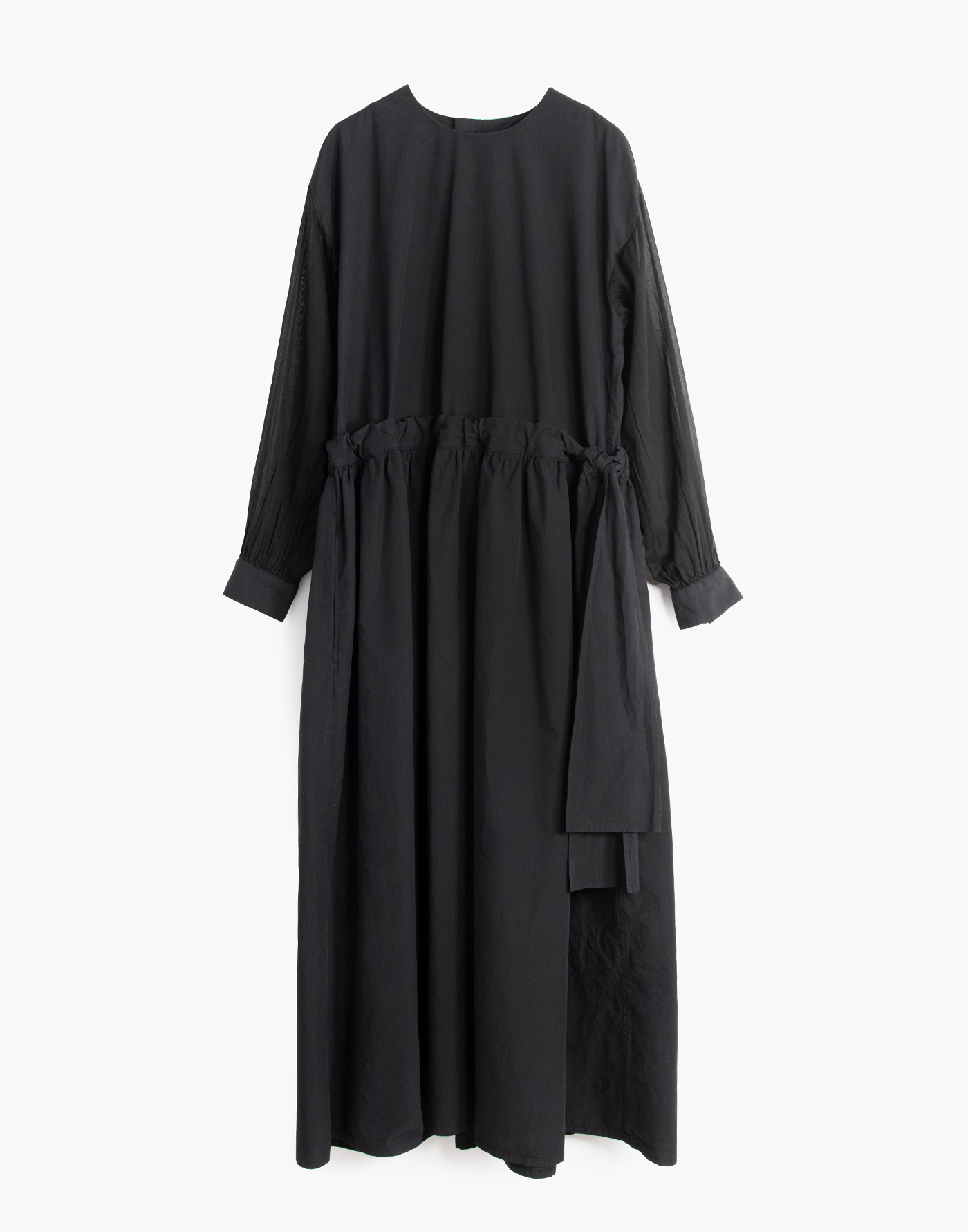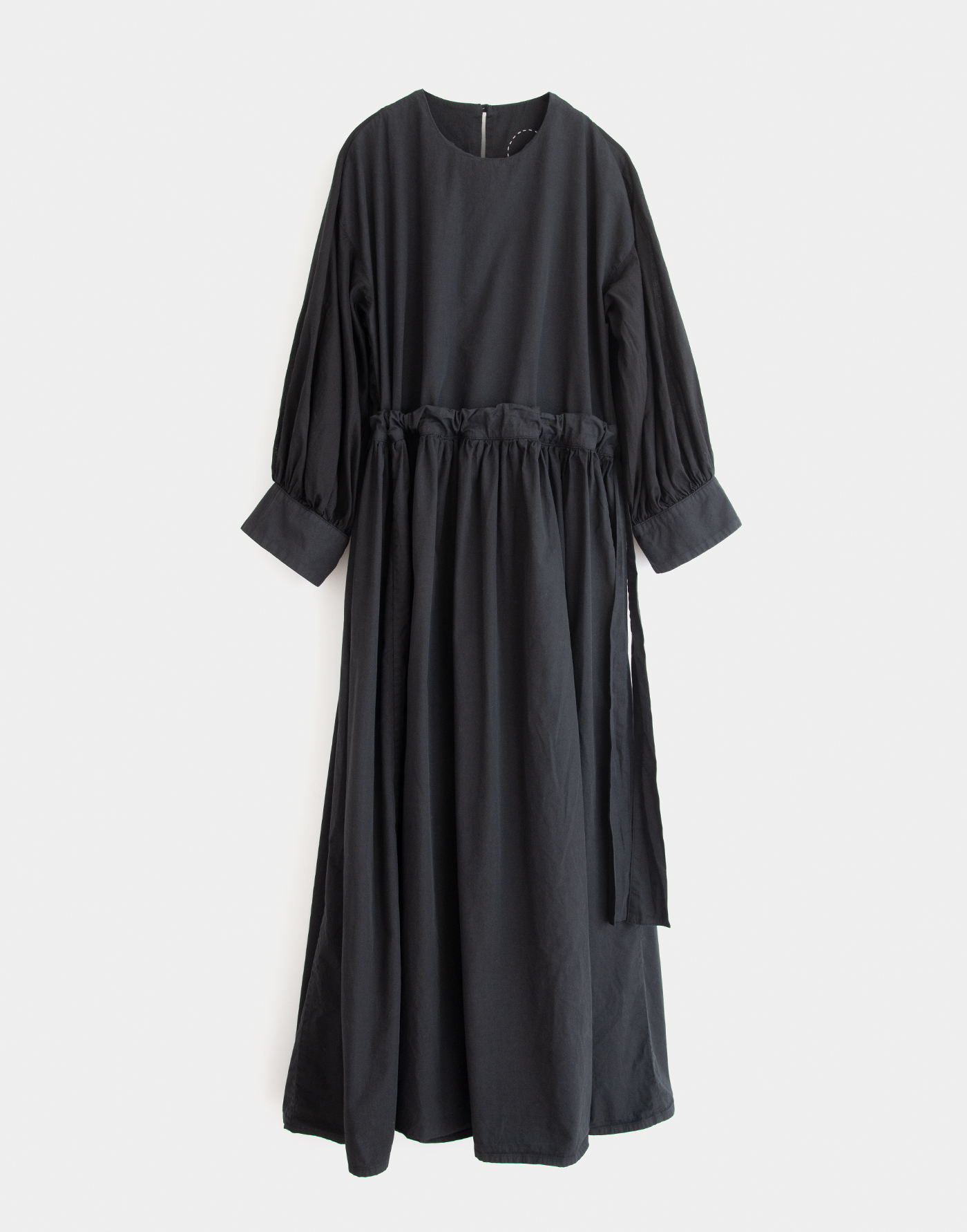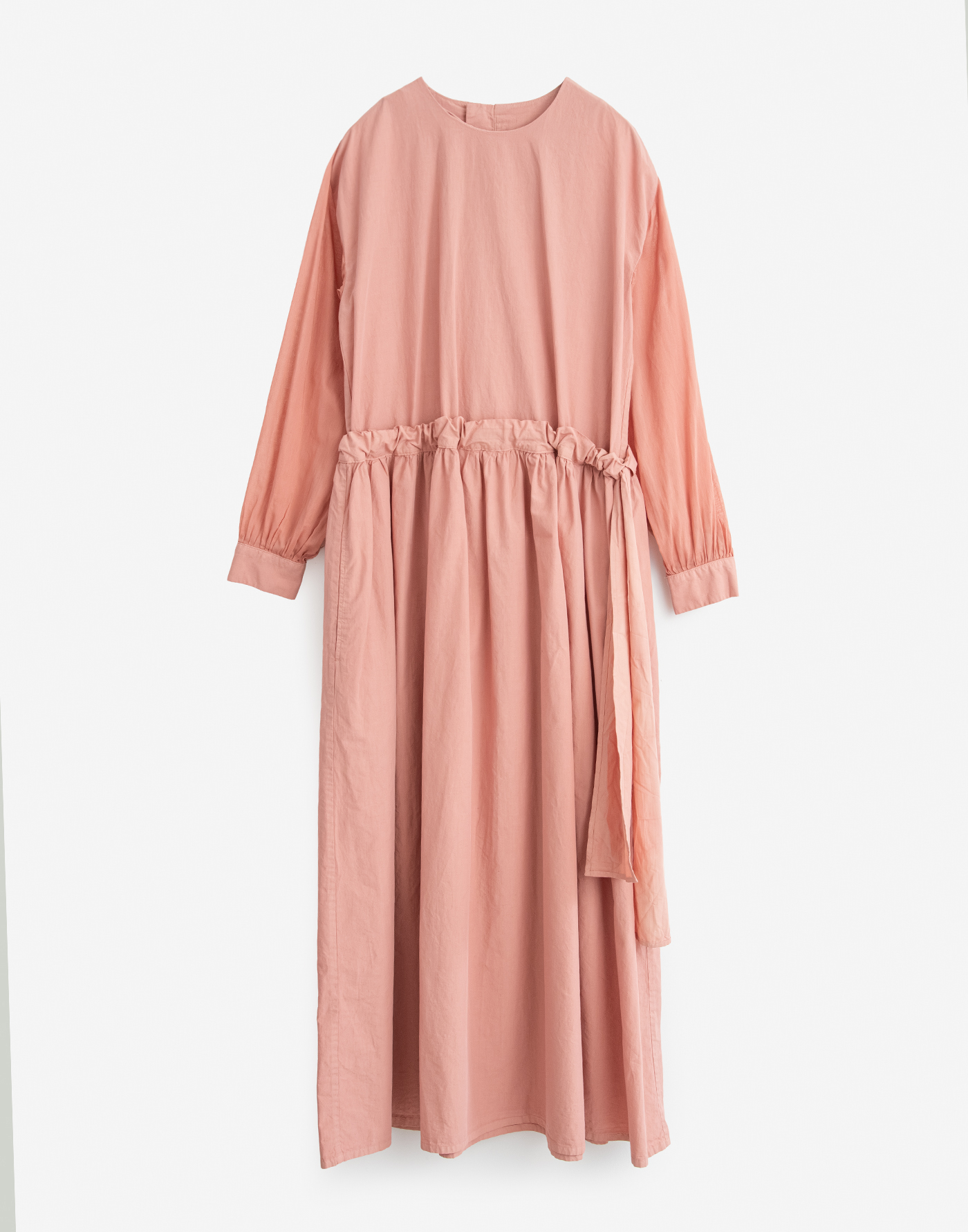 Light merino wool linen cotton glencheck elegant gathered shirt dress